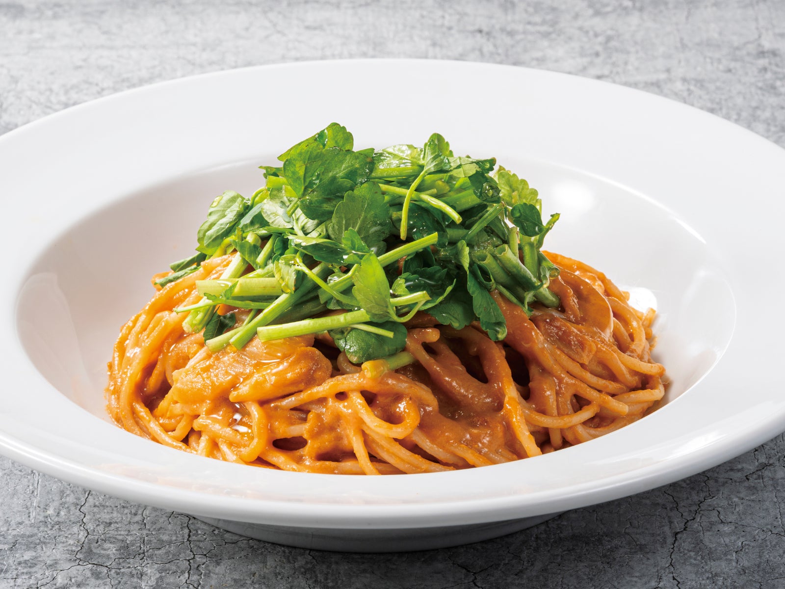 日常に上質感を味わう大型ホームセンター内のカジュアルレストラン「チェントペルチェント」にて、季節限定メニュー「雲丹とセリのスパゲッティ」を販売いたします。