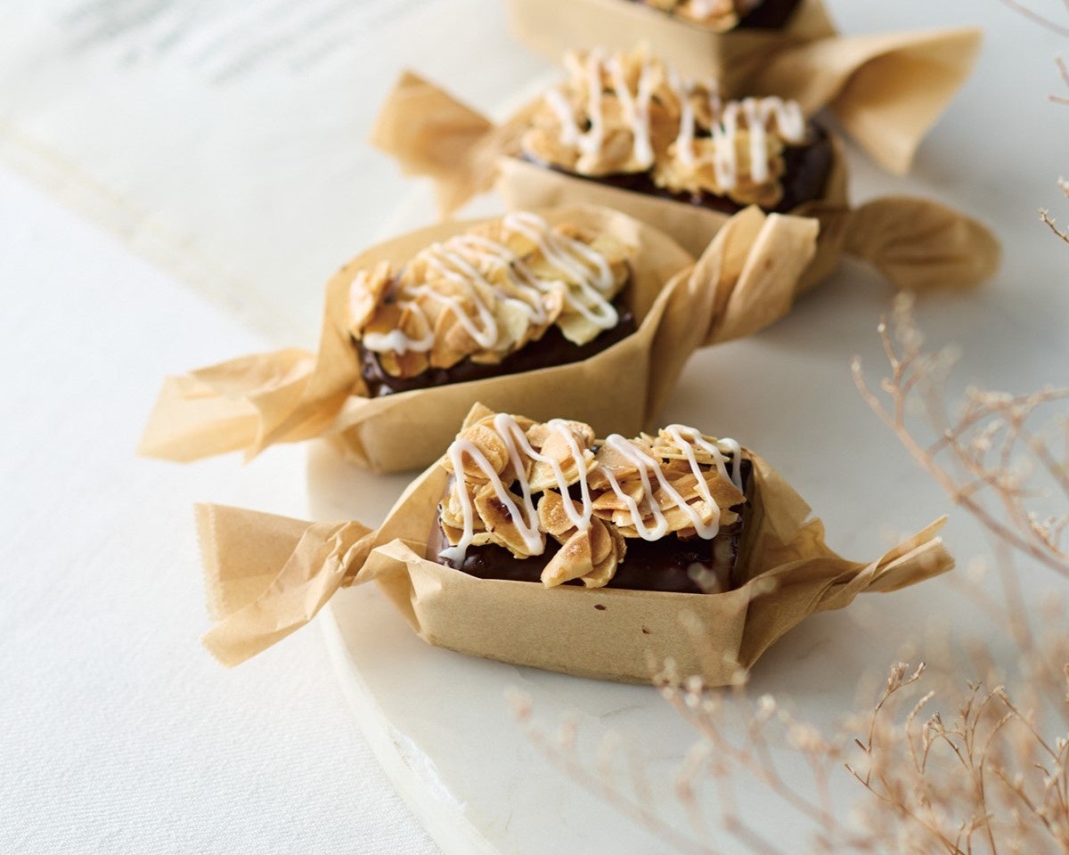 産地とのつながりを大切にし、素材の良さを生かしたお菓子とコーヒーを展開。サクほろ食感のグルテンフリークッキーでチョコレートをサンドしたLOVE FLOWER BITESは、レモンホワイトチョコレートとシナモンチョコレートの2種の味わいを一箱で楽しめます。