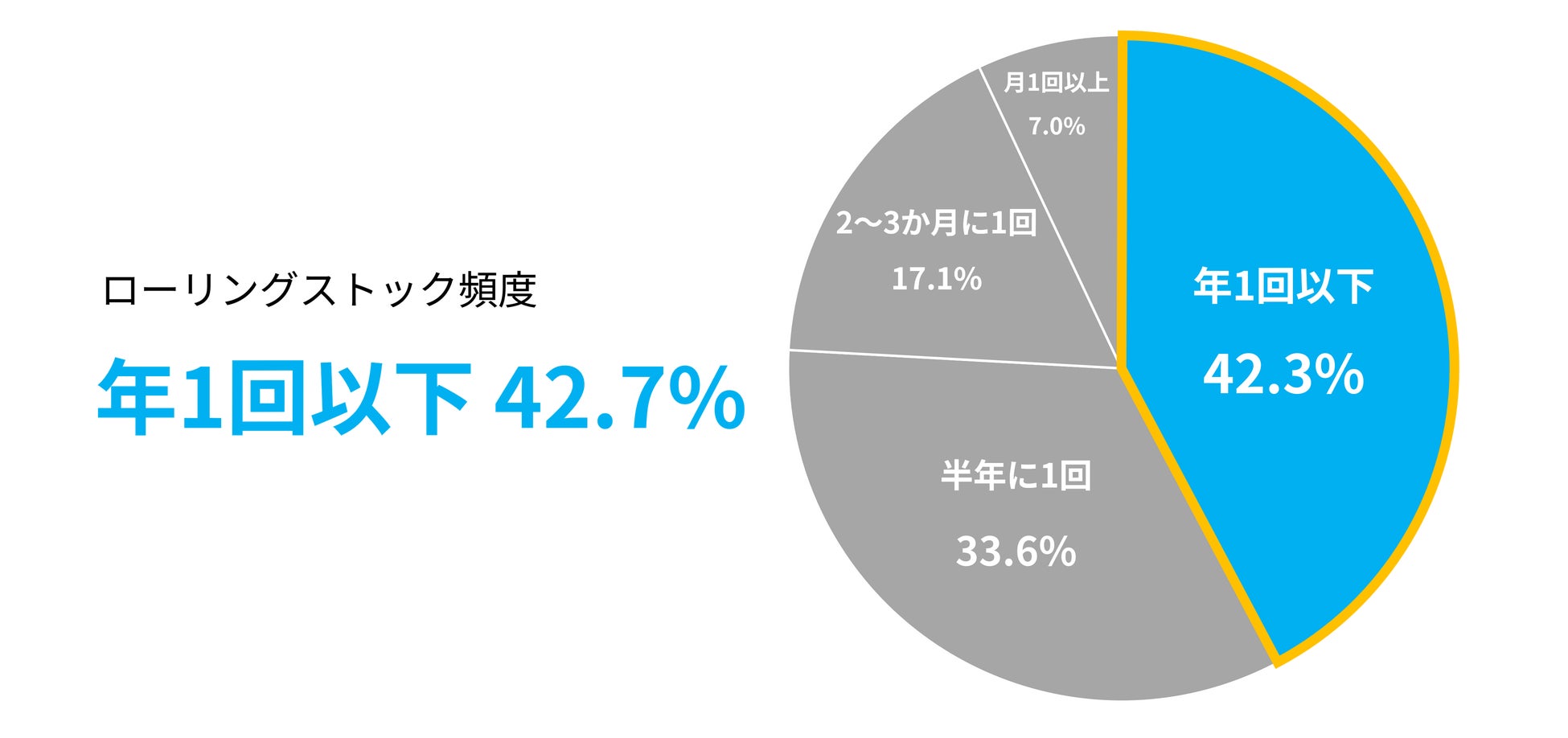 備蓄品の入れ替え(ローリングストック)の頻度を尋ねたところ、「年1回以下」が42.3%で最も多く選ばれました。定期的な賞味期限のチェックと入れ替えが必要とされる一方で、面倒な作業を避けるため年1回程度の更新で十分と考える傾向があります。無駄を減らしつつ確実な備蓄管理を実現する方法として、年1回の入れ替えが適切だと判断されています。