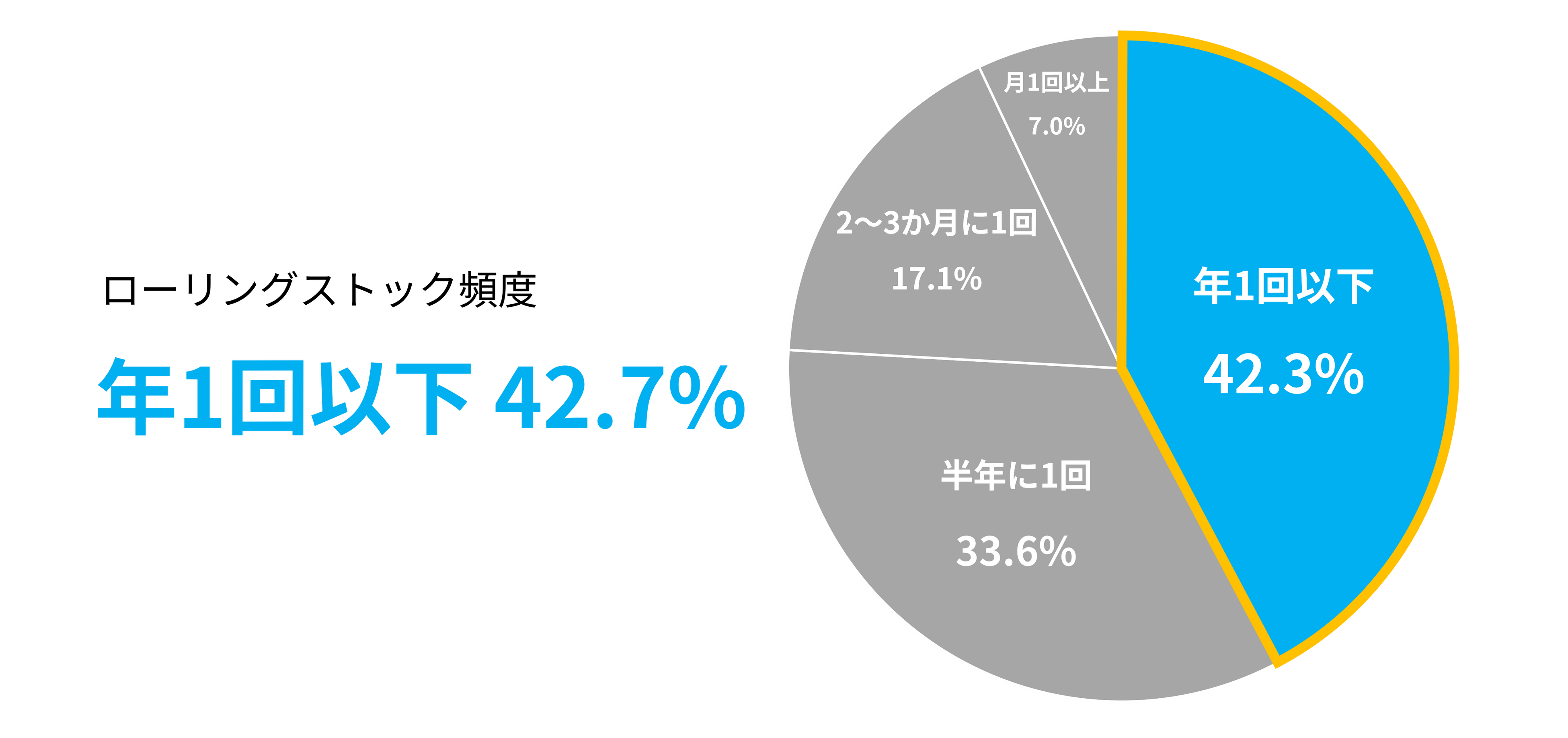 備蓄品の入れ替え(ローリングストック)の頻度を尋ねたところ、「年1回以下」が42.3%で最も多く選ばれました。定期的な賞味期限のチェックと入れ替えが必要とされる一方で、面倒な作業を避けるため年1回程度の更新で十分と考える傾向があります。無駄を減らしつつ確実な備蓄管理を実現する方法として、年1回の入れ替えが適切だと判断されています。