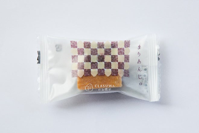 『まりあんじゅ』は、くらすわの森グランドオープンと同時に考案した焼き菓子。スイスの伝統菓子エンガディナーをベースに考案され、くらすわオリジナルで開発した粒立ちと風味豊かな小倉あん「つぶころあんこ」とキャラメルをあわせ、アクセントにクルミを加えたフィリングをサブレ生地でサンドした、和と洋の美味しさがギュッとつまった一品です。販売開始以来、多くのお客様からご好評をいただき、現在では『くらすわ』を代表する商品の1つになっております。
