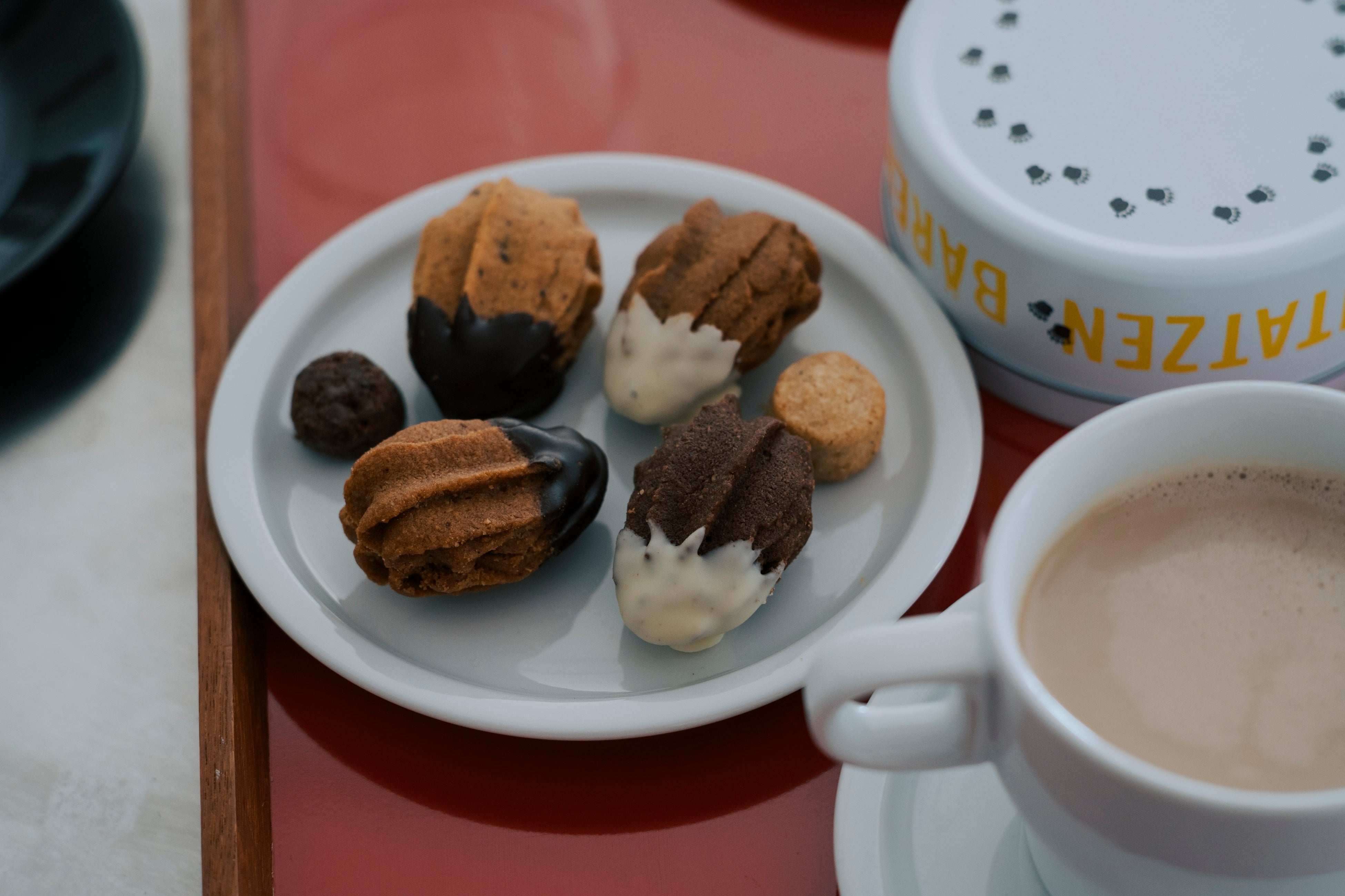 そんなベーレンタッツェンを、今回は星型の口金で絞って焼きあげたクッキーにチョコレートをディップし、くまの手をかたどった愛らしい焼菓子に仕上げました。ヘーゼルナッツやアーモンドプードルを練り込み、香ばしさを引き出した深みのあるリッチな味わいで、チョコレートとの相性も抜群です。