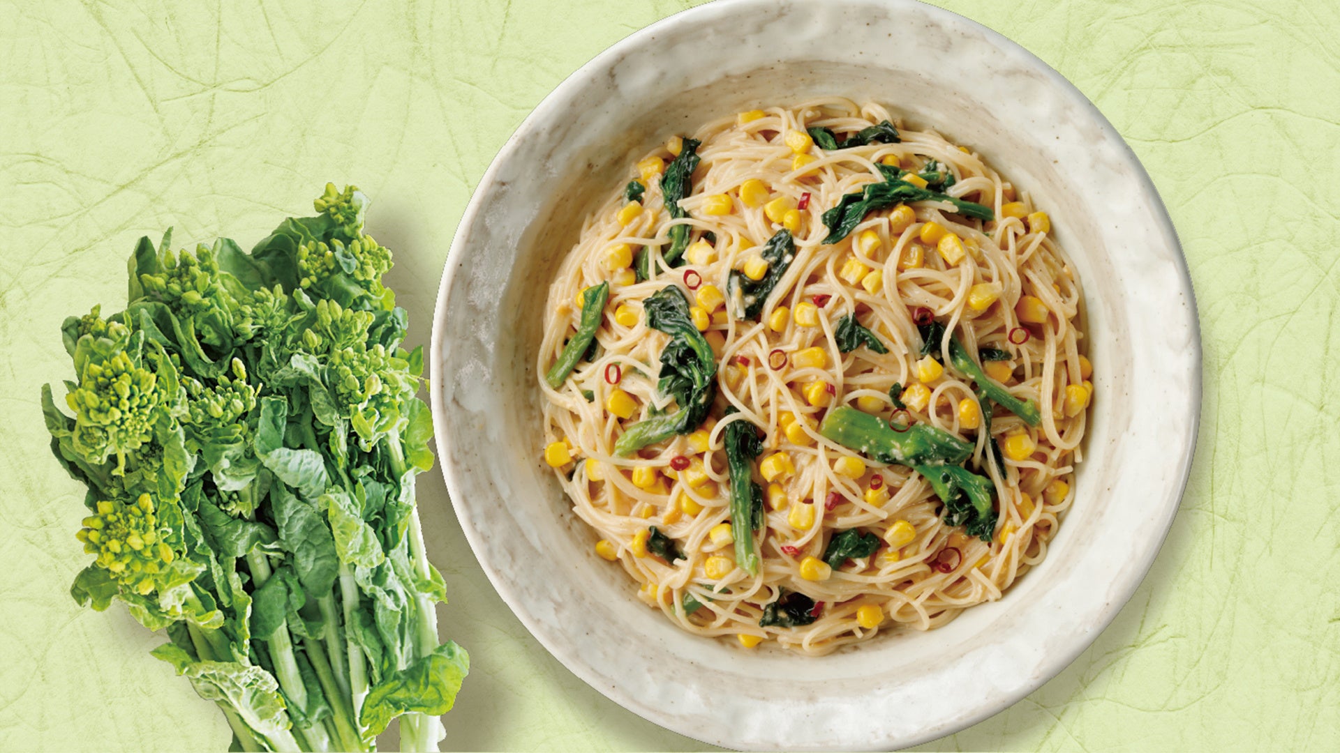 ▲「菜の花のたまごペペロンチーノ」