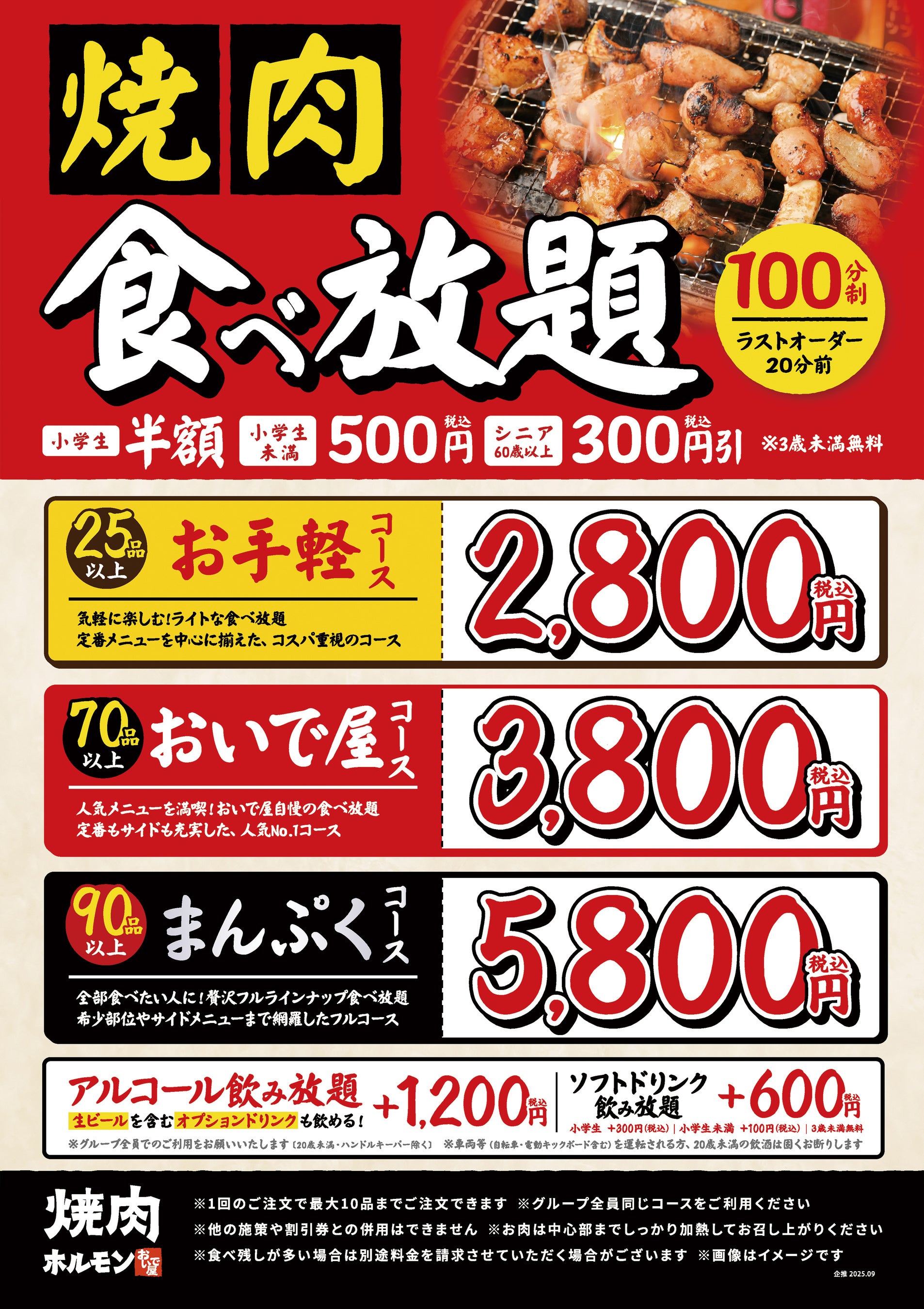 ・食べ放題の料金はご年齢により異なります。(全コース共通)