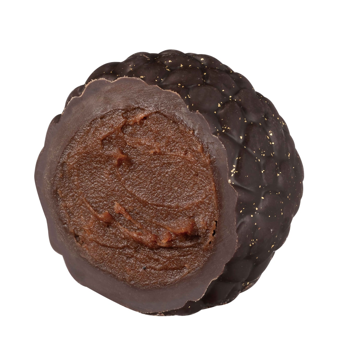 まろやかでクリーミーなミルクチョコレートのシェルに包まれているのは、香ばしく濃厚なヘーゼルナッツのガナッシュです。上品な口あたりの中に、ひと口で心を奪われるようなインパクトが広がり、ナッツの力強い香りと深みが余韻として残ります。