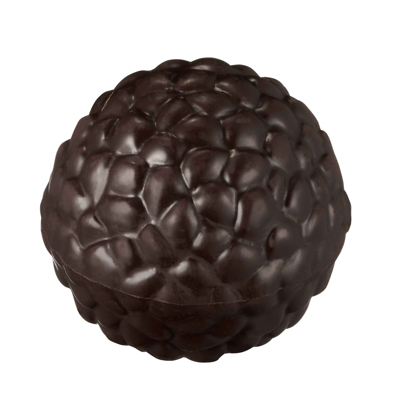 インスピレーションを得たのは、クラシックなフランス伝統デザート「ポワール・ベル・エレーヌ」。洋ナシがふわりと香るガナッシュに、甘さと苦味の絶妙なバランスを楽しめるダークチョコレートを合わせ、伝統への敬意とシェフのモダンな感性がひとつになったひと粒です。