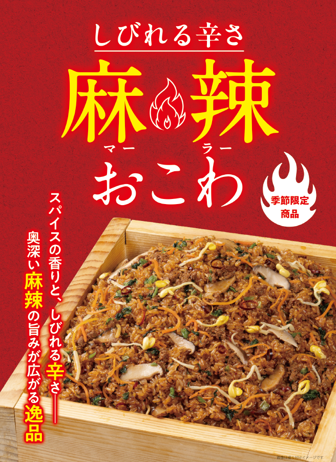 株式会社グリーンハウスフーズが展開するおこわ専門店「たごさく」「たもかみ」は、1月15日(木)から、しびれる辛さと後引く旨みが特徴の新商品「麻辣おこわ」を期間限定で販売いたします。