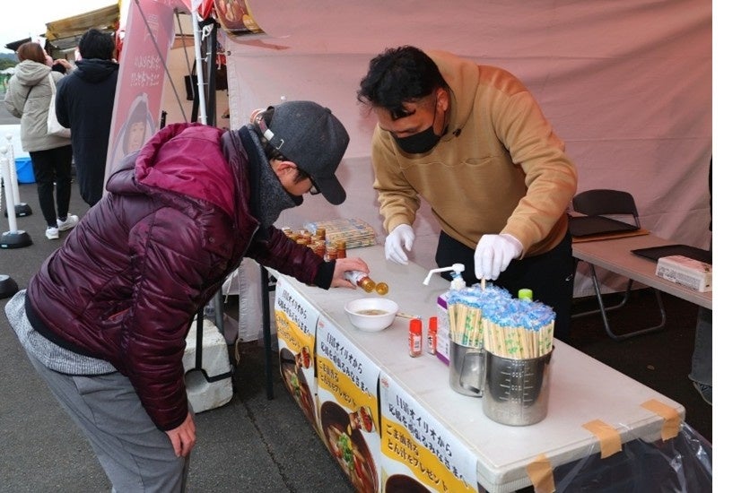 全国大会ではブースも出展。応援のエネルギーをチャージしていただく「日清かけて香る純正ごま油」をかけた温かいとん汁の提供や、当社商品が当たるゲームの実施、キャプテン翼のキャラクターと写真撮影が出来るARフォトフレームの提供などを通じて、大会の盛り上げに貢献しました。