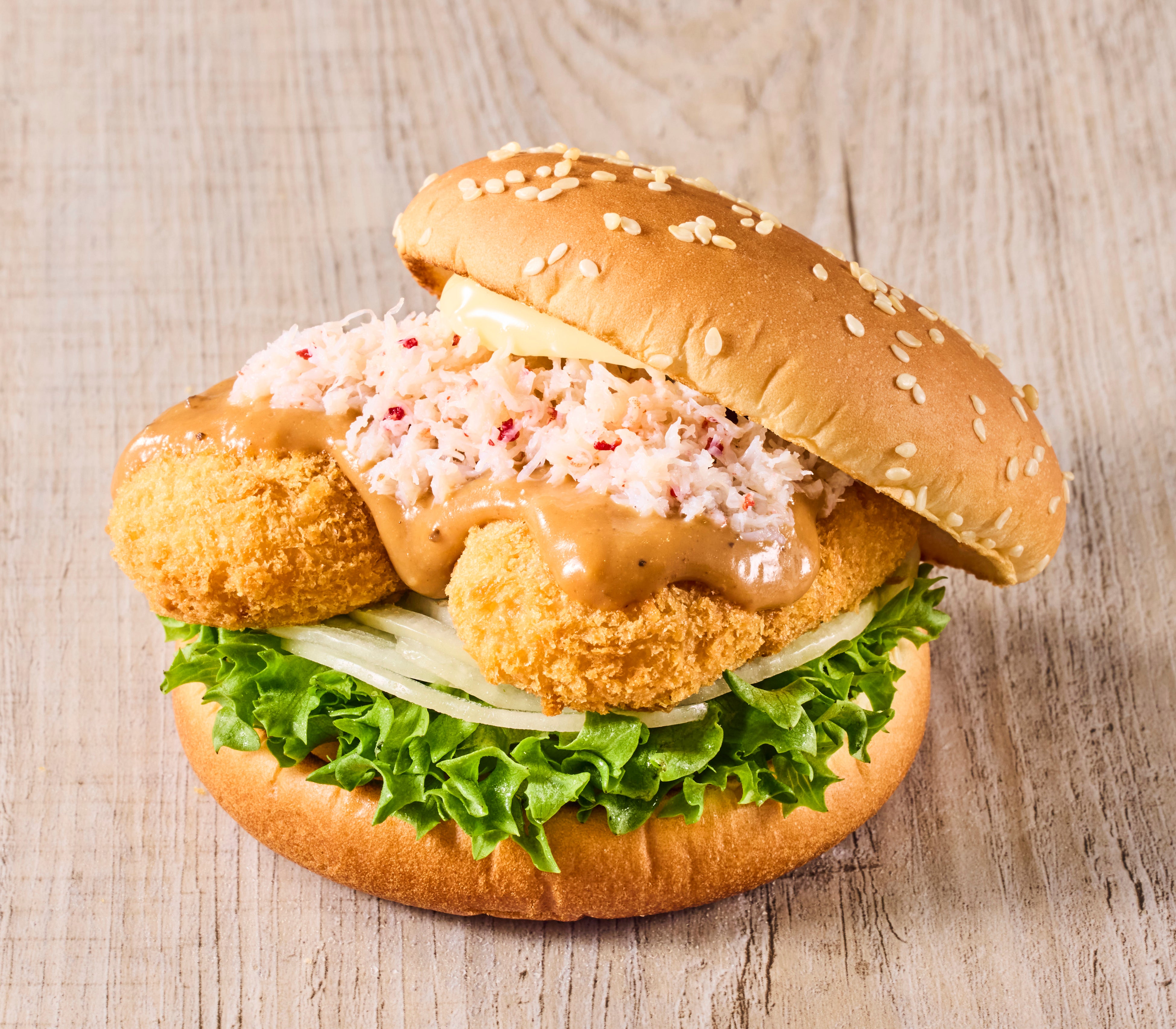 オオズワイガニの濃厚なクリームコロッケを豪快に2個サンド。クリームコロッケの上には、さらに蟹身をたっぷりと後乗せし、存分に蟹の美味しさをご堪能いただける一品です。ソースは、老舗洋食店では定番の旨味と酸味のバランスが絶妙な「濃厚トマトソース」と、料理人が仕上げに使う焦がしバターの技法を取り入れたリッチでコク深い「ブラウンバターソース」の2種をご用意しました。