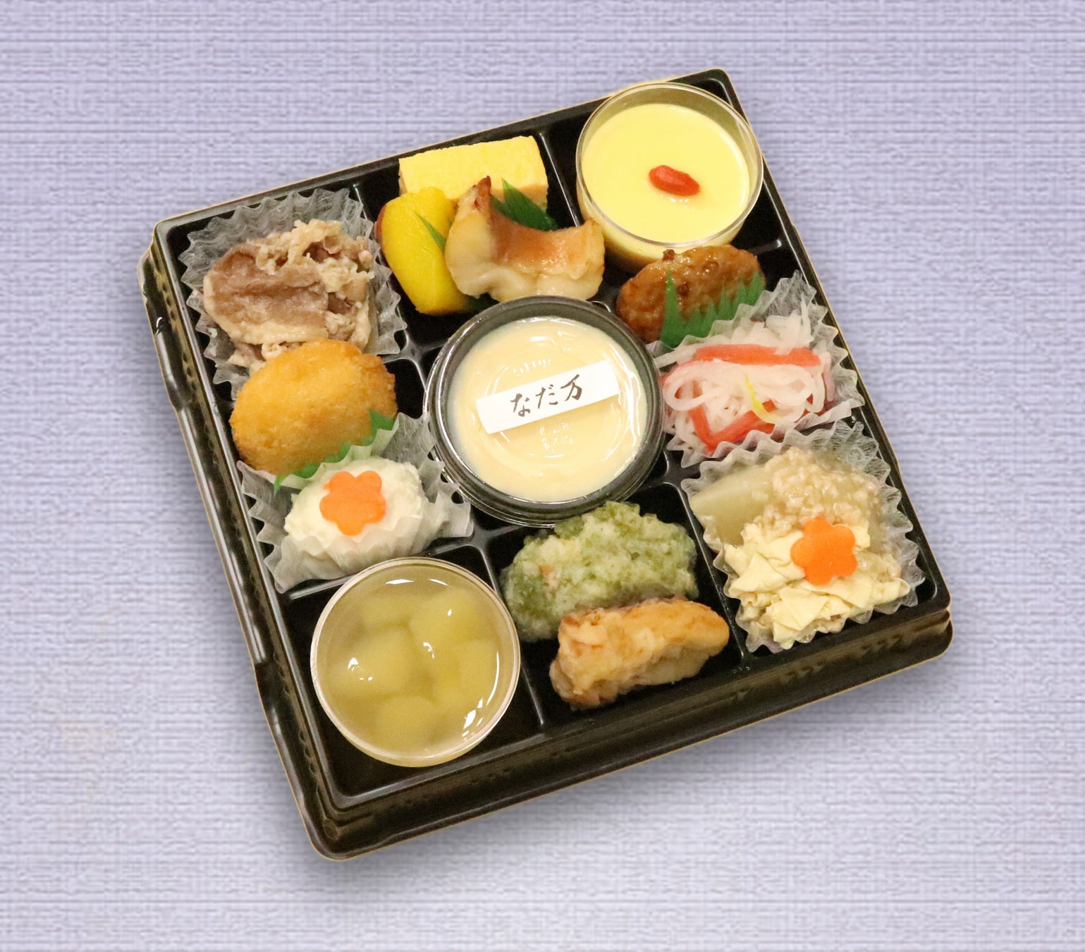 なだ万の弁当・惣菜を販売するショップは、全国のデパートをはじめとする商業施設内の店舗(43店舗)のほか、通販サイト「お弁当配達」を運営しています。