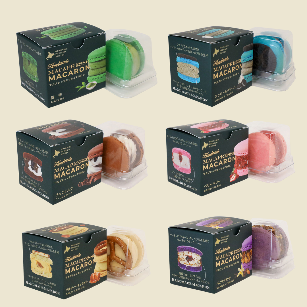 見た目のインパクトはもちろん、通常のマカロンよりも厚みがあり、たっぷりのクリームをサンドした太っちょマカロンです。