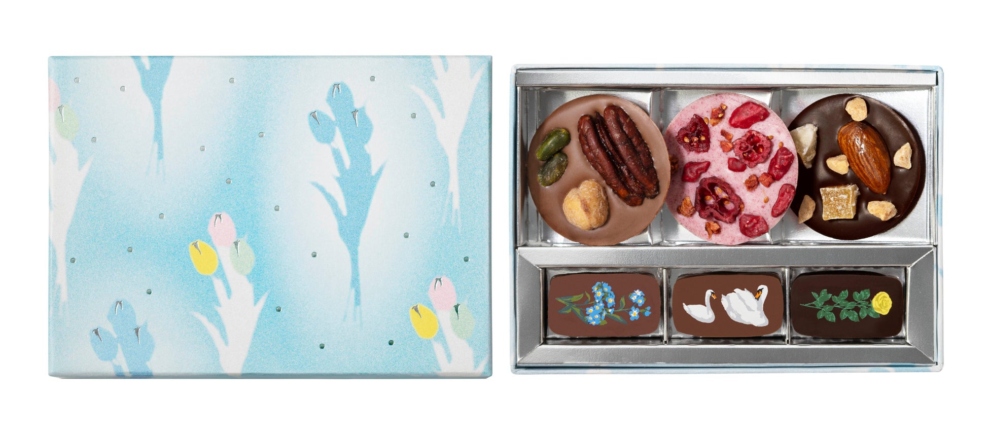 こころを満たす、”花”と”酒”と”チョコレート”。豊かな自分時間をテーマに、何気ない日常の4つのシーンに寄り添うチョコレートボックスが登場します。春を告げる鮮やかなミモザやチューリップ、カーネーションなど、フラワーカクテルをイメージした華やかなチョコレートに、フルーツやリキュールなど多彩な味わいが魅力的。パッケージにもこだわった可愛らしい詰め合わせがおすすめです。