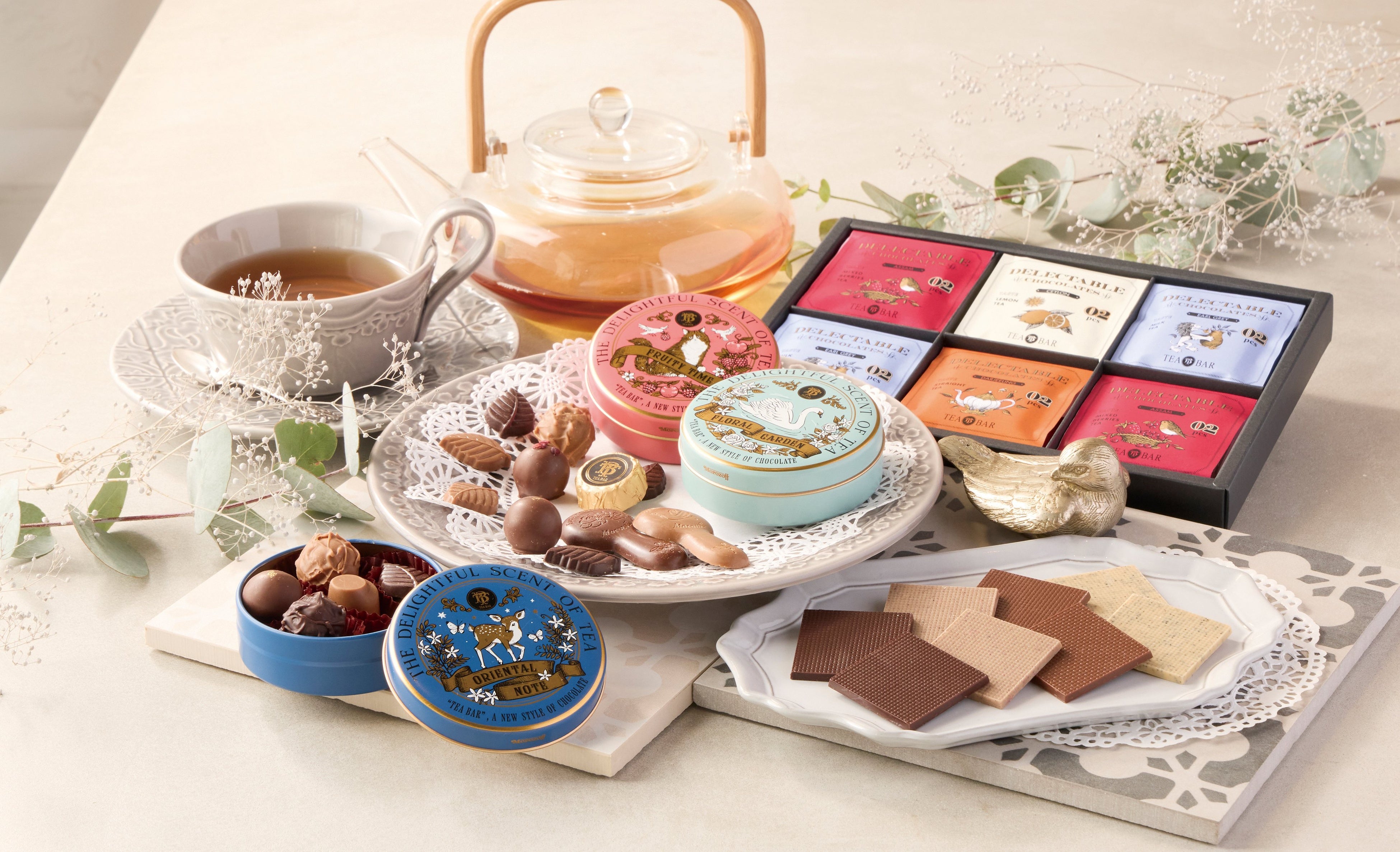 冬のお庭でのアフタヌーンティーを連想させるチョコレートが集結。