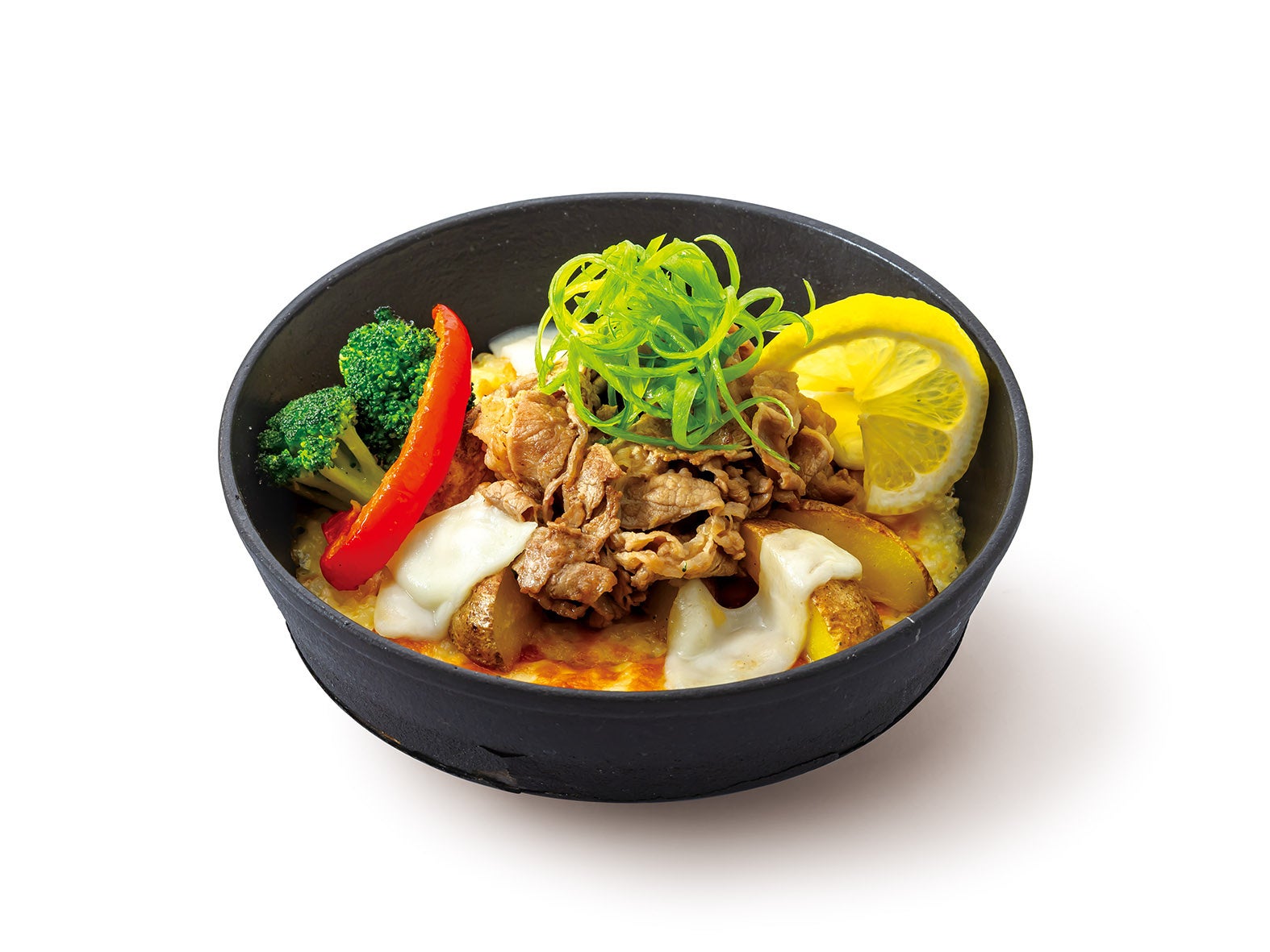 醤油ベースのレモンソースでさっぱり仕上げました。玉ねぎや北海道ポテト、彩り野菜に牛バラ肉まで盛りだくさんのドリアです。