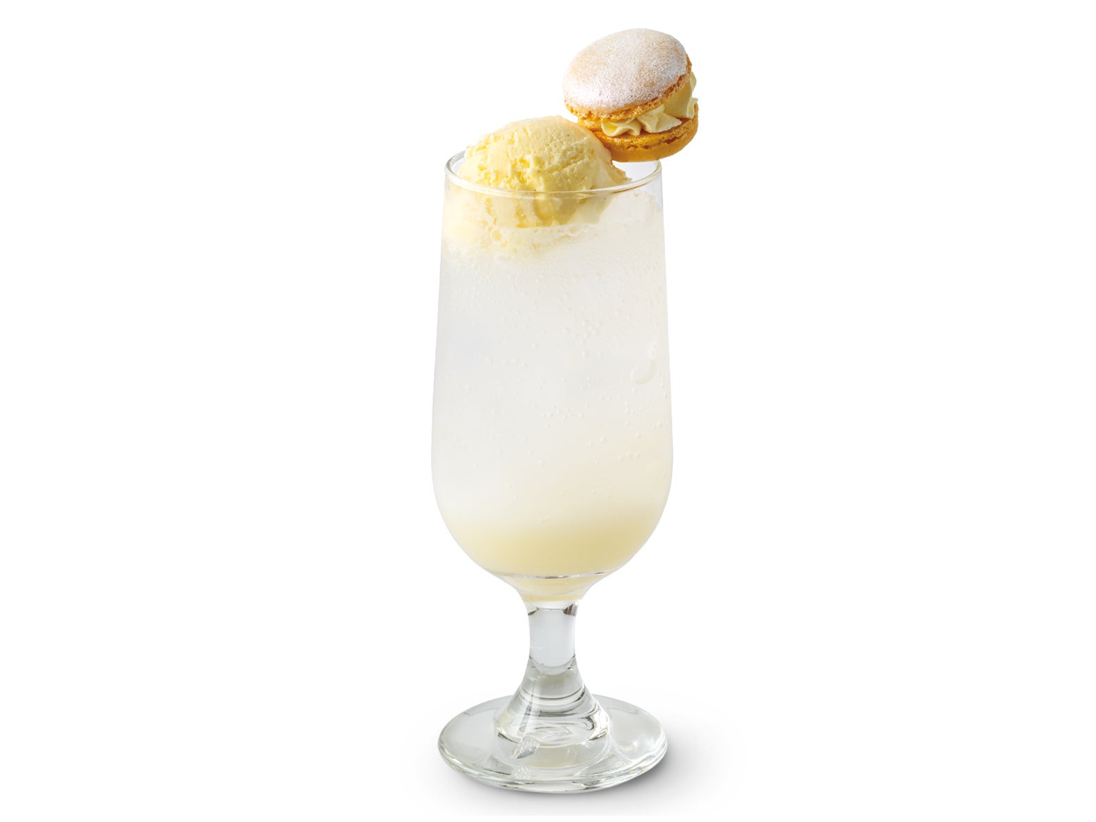 真っ白なホワイトソーダにバニラアイスを浮かべ、白銀ノエルイメージのマカロンをトッピングした特製フロート。爽やかな甘さとやさしい口当たりで、一口飲めば心まで癒される…贅沢なひとときをどうぞ。