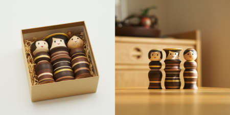 3体がぴったりと寄りそう「ルビンのこけし フレンド」は、3つ並べても幅約12cmと手のひらに収まる可愛らしいサイズが特徴。茶色とゴールドを基調にした「チョコレートカラー」を、期間限定で1年ぶりに再販いたします。インテリアとして暮らしに馴染む本商品は、バレンタインの贈り物としてもおすすめです。