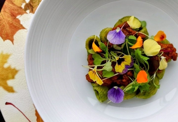ぜひ味わっていただきたいのは、トリュフの香りをまとった蝦夷鹿の一皿や、自家製の赤身マグロのブレザオラ。さらに、コースの中で提供される「ウナギのボロネーゼ・ラグーを添えたルマーケ・リガトーリ」のパスタは、特に印象に残る逸品です。