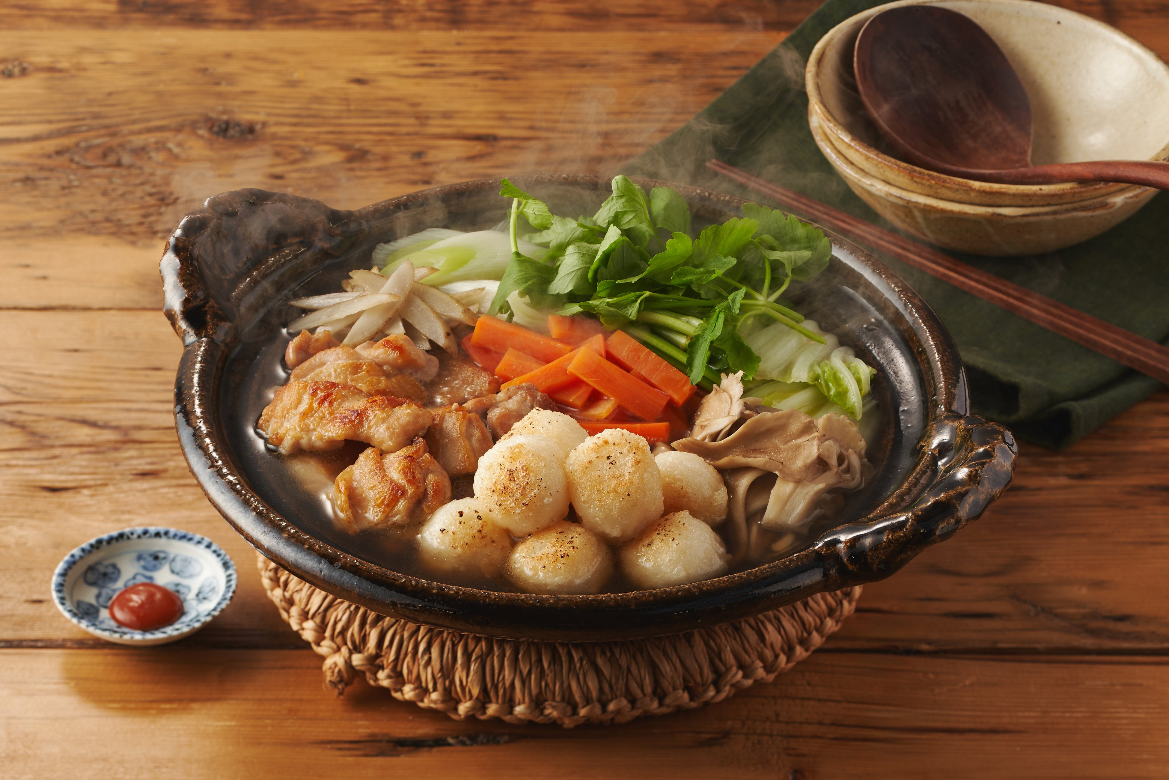 5種類以上の野菜など必要な食材とレシピがセットになった鍋のミールキット「鍋Kit」からは、「〆は出汁カレー!焼きだまこの鶏だし秋田鍋」を販売します。寒い冬の食卓を贅沢に彩る秋田の郷土料理「だまこ鍋」をアレンジした本商品は、ご飯をすりつぶして丸めたお団子の「だまこ」と、風味豊かな「せり」、鶏出汁ベースのスープに秋田名物「しょっつる(魚醤)」を隠し味として加えるなど、秋田の食材を3つも使用した贅沢な一品です。そして、この鍋の最大の魅力は「〆」にあり、佐々木希さんも大好きな和風出汁カレーで、スープの旨みを余すことなく堪能できます。お子様も喜んで食べられ、家族みんなが最後まで楽しめる、一度で二度美味しいひと品に仕上がりました。