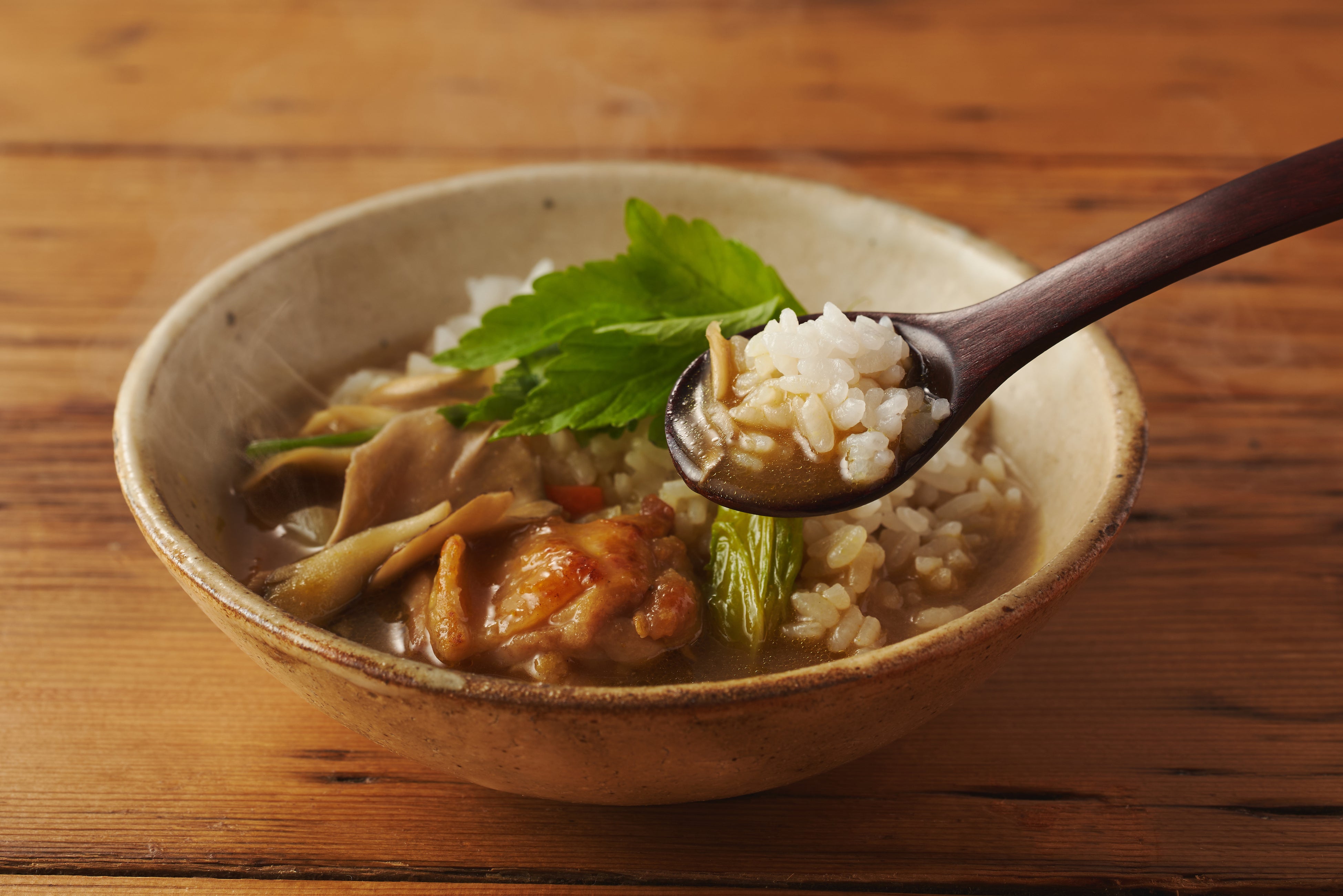 商品説明:秋田の郷土食材「だまこ」や風味豊かな「せり」などを贅沢に使用。スープは秋田の食材「しょっつる(魚醤)」を使用し、醤油ベースで奥深い味わいに。〆には佐々木さんが普段から作っているカレーからインスピレーションを得た、「出汁カレー」で〆るという驚きと満足感のある味変が楽しめます。和風出汁が効いた優しい味わいはお子様にもおすすめです。
