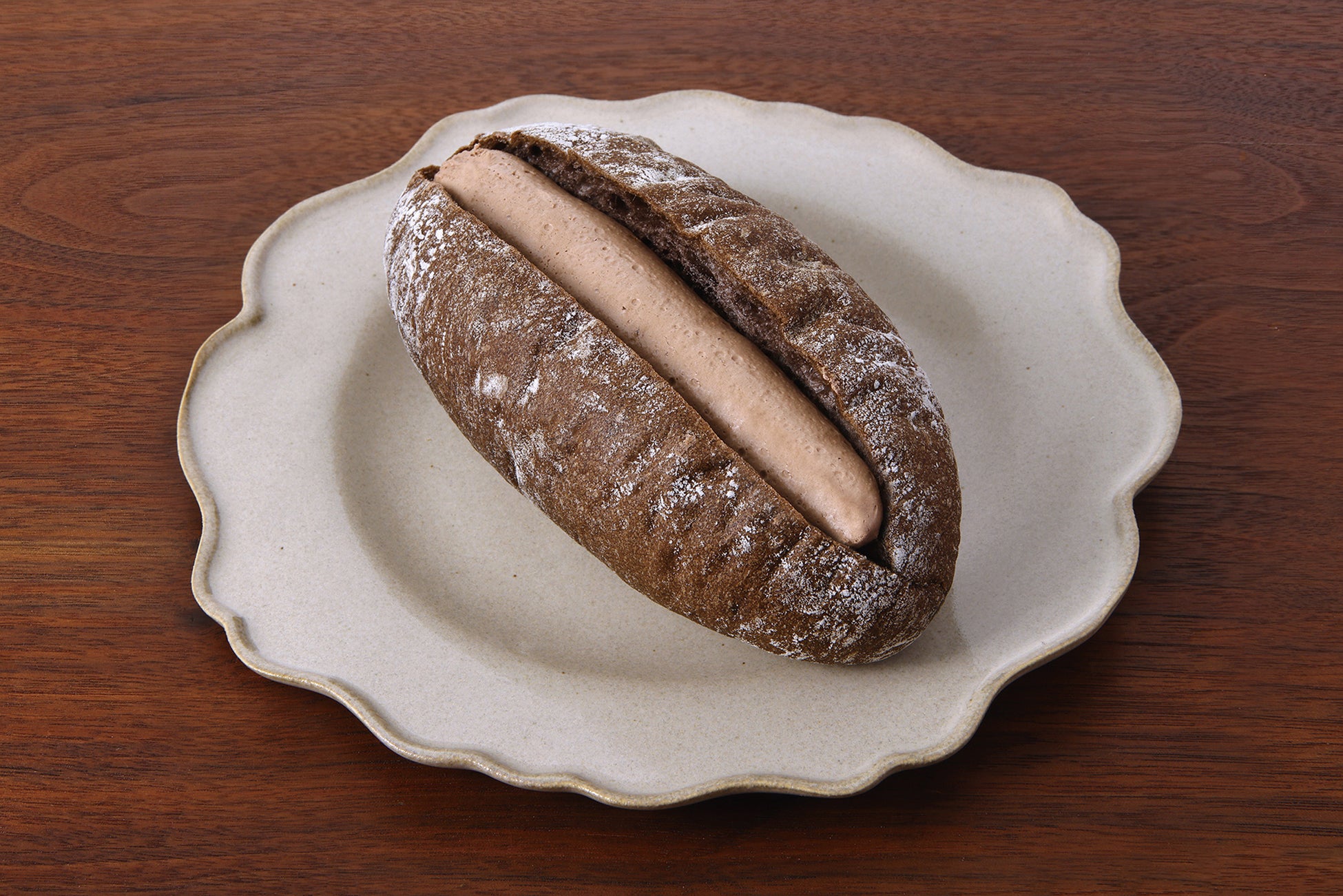 チョコ風味のフランスパンにチョコホイップクリームとチョコクリームをサンドしました。