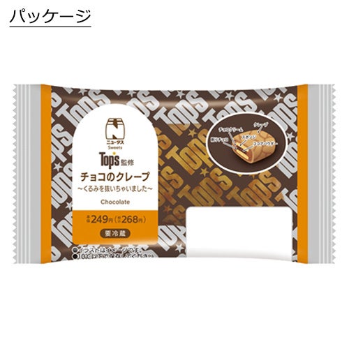 Top’sの人気商品「チョコレートケーキ」をイメージし、クレープ皮にチョコクリーム、スポンジ、削りチョコ、ココアパウダーを入れ包みました。「くるみ」を抜いてチョコクリームをシンプルに楽しめるように仕上げました。