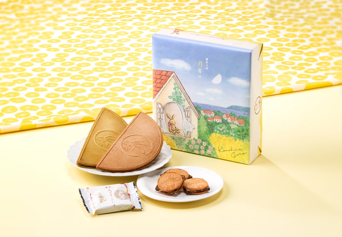 まるで絵本のような愛らしい世界観で描き上げた春限定デザインのスイーツボックスです。「春の鎌倉」をテーマに描き上げたパッケージに、代表銘菓『鎌倉半月』と『鎌倉チョコサンドだょ』を詰め合わせました。パッケージには春の訪れを感じさせる鎌倉の海が。色鮮やかな花々に囲まれる高台から、「きぼり」がぼんやりと浮かぶ“鎌倉半月シルエット”のお月様を眺めています。手に取った瞬間から物語が始まりそうな、わくわくに満ちあふれた世界をお楽しみください。