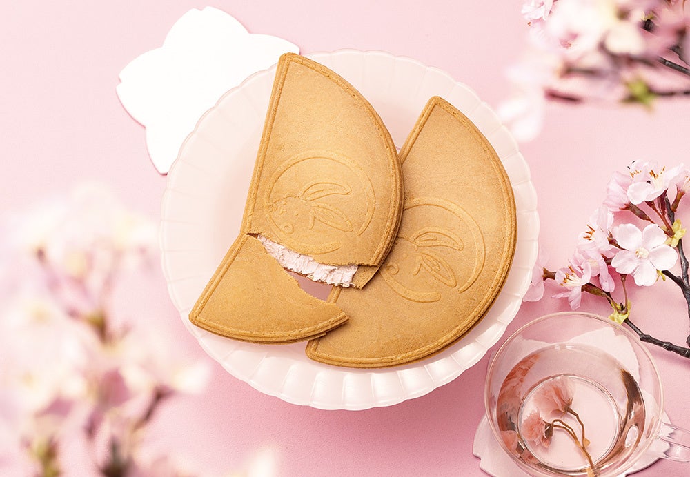 愛らしい月うさぎ印でおなじみ、鎌倉五郎本店の『鎌倉半月』は“さくっ”と香ばしいゴーフレットせんべいに、“ふわっ”と軽いクリームをたっぷりはさんだ鎌倉銘菓です。そんな幅広い世代に愛され続ける『鎌倉半月』が、春爛漫の桜になって登場。『鎌倉さくら茶半月』はご卒業、ご入学、就職祝いなど春の贈り物にぴったりです。ぜひ華やかな春と一緒にお楽しみください。