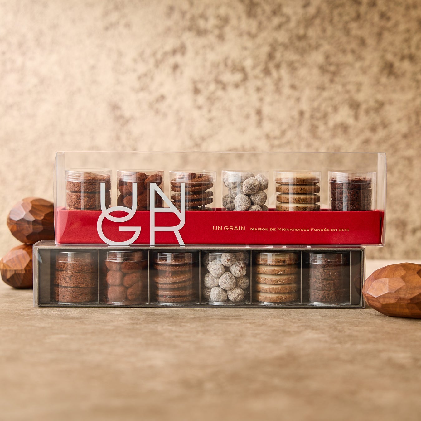 カカオからなる様々な素材を贅沢に使った、この時期にしか出会えない特別なラインナップをご用意しました。やさしく広がるカカオの香りと食感の違いも楽しめる“カカオの余韻”が、心まで満たされる至福のひとときをお届けします。店頭では、限定の赤い箱に入れてご提供※。贈り物としてお選びいただく方にもおすすめです。バレンタインギフトにはもちろん、日常の自分へのご褒美にも、UN GRAINのジョワイユ ショコラをお楽しみください。