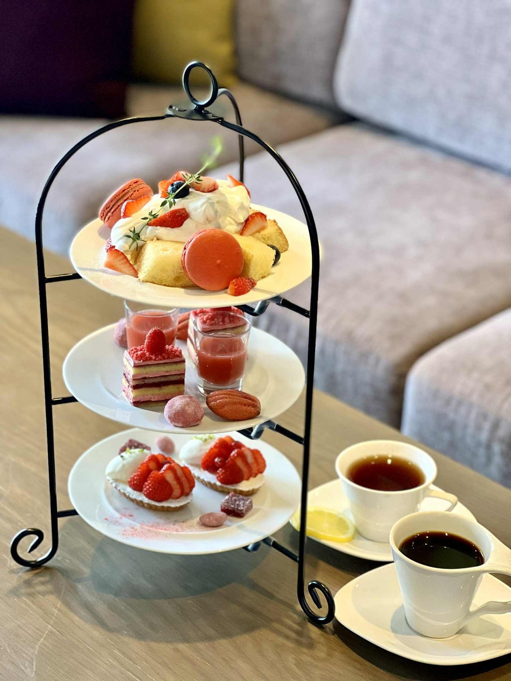 苺のタルトや、マカロン、ガトージャポネなど苺がたっぷり詰まったアフタヌーンティーです。