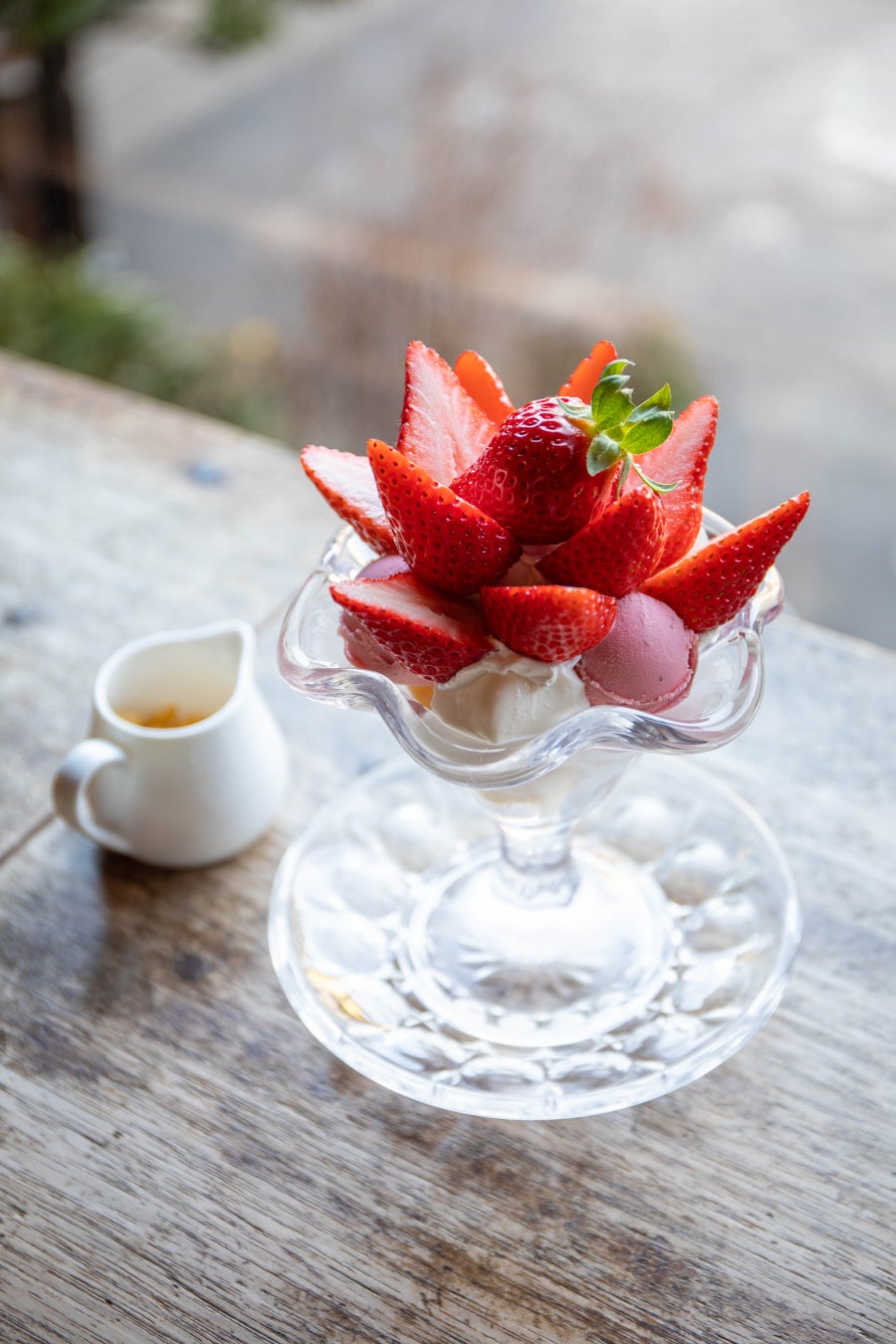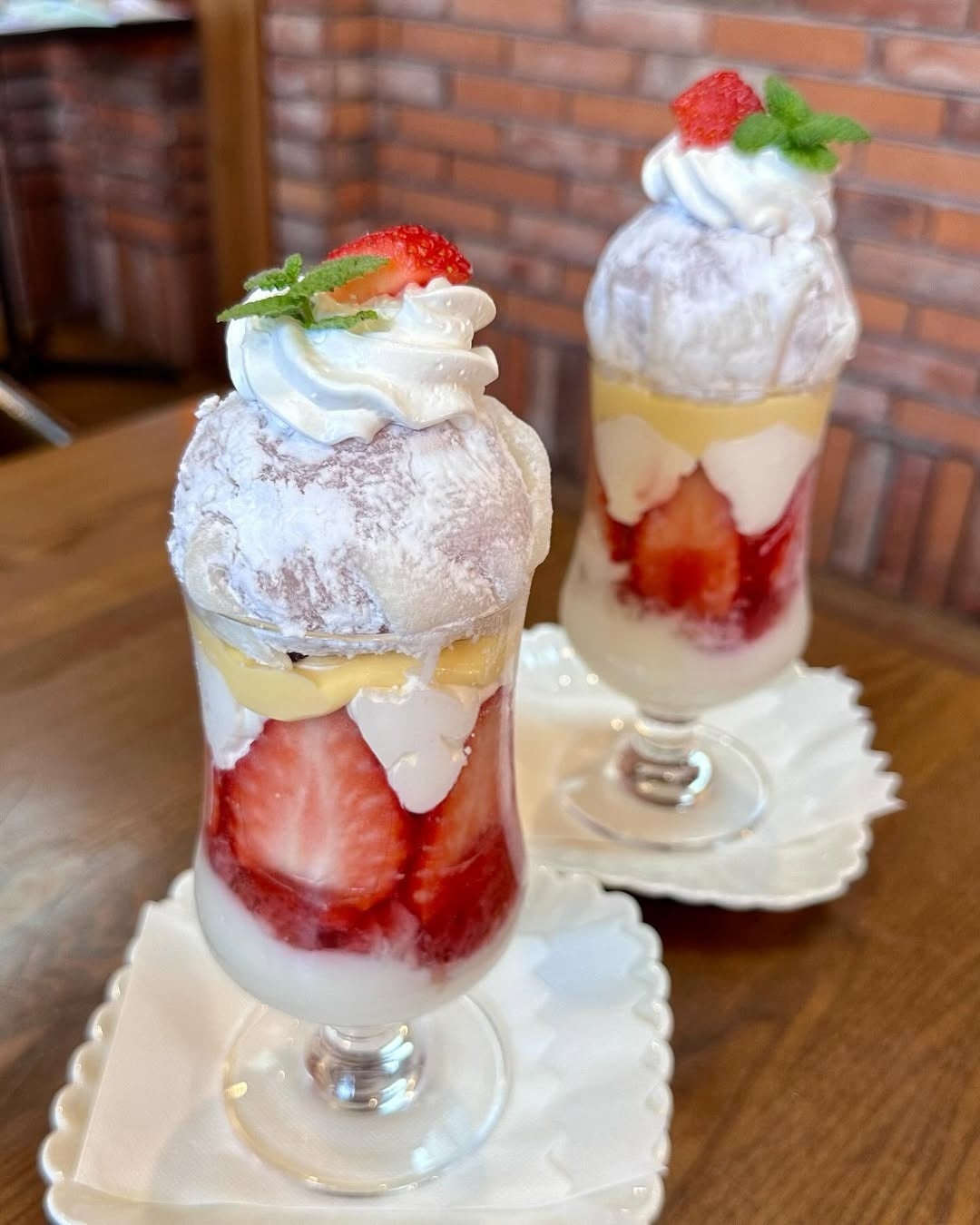 大粒の苺がたっぷり味わえる、まさにプレミアムなパフェ。苺は常滑産「ゆめのか」を使用しています。