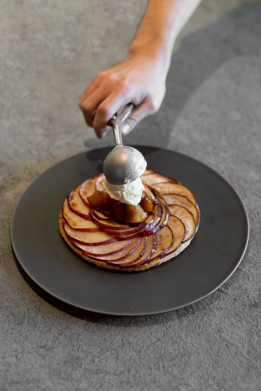 土台となるアップルパイは、店舗で毎朝丁寧に焼き上げています。