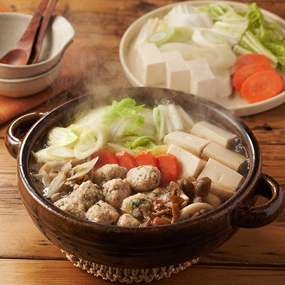 概要:具材(生つくね、ぶなしめじ、ごぼう、なめこ)と、かつおだし・昆布だしを合わせた醤油スープの素がセットになっています。 つくねにはごぼうと青ねぎ、生姜を入れ、野菜の風味も楽しめるように仕上げています。 冷凍のまま調理可能で、ご家庭の白菜250g程度を加えるだけで一品が完成します。 長ねぎや、きのこ類をさらに加えてもおいしくお召し上がりいただけます。