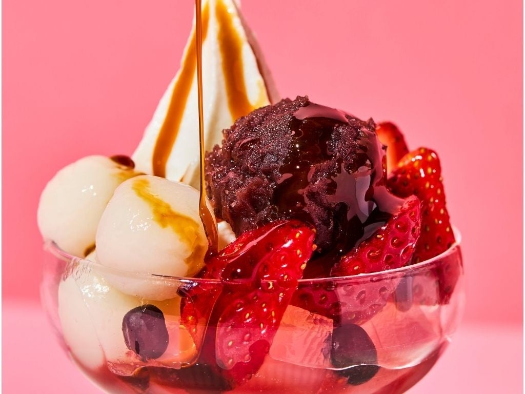 苺と白玉のクリームあんみつ