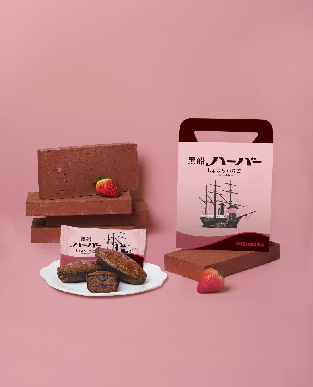 生地とチョコに苺を使用した苺づくしの焼菓子です。苺の可愛らしいパッケージを横浜赤レンガ倉庫限定パッケージで販売します。