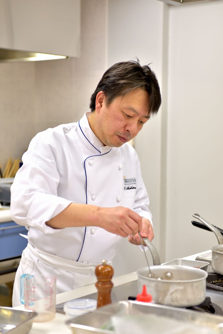 1967年生まれ。10代からフランス料理を学び、代官山「メゾン ポール・ボキューズ」初代料理長やスカイツリーの「Sky Restaurant 634」総料理長などを務め、現在ネスレ日本アドバイザリーシェフとして腕を振るう。培ってきたフランス料理をベースに和のテイストを加えた独創的な料理スタイルを提案している。