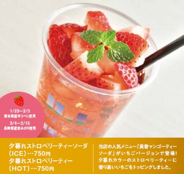 いちご主産県の取り組み。うち1月23日(金)~2月3日(火)の期間中「ゆうべに」を使用したティーソーダ(ICE)・ティー(HOT)を販売
