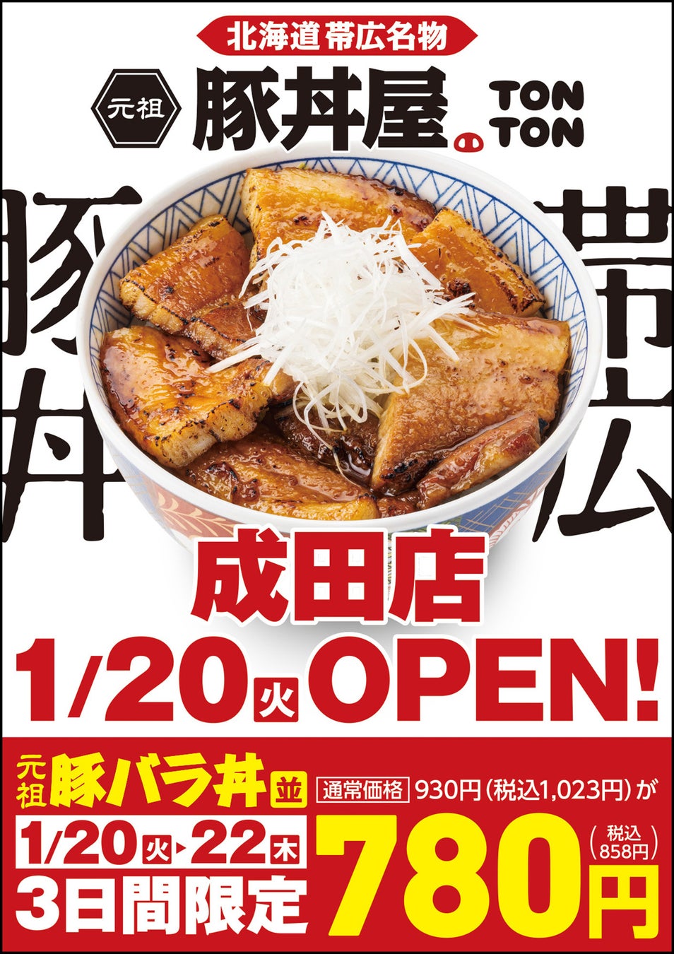 2026年1月20日(火) 元祖豚丼屋TONTON 成田店オープン
