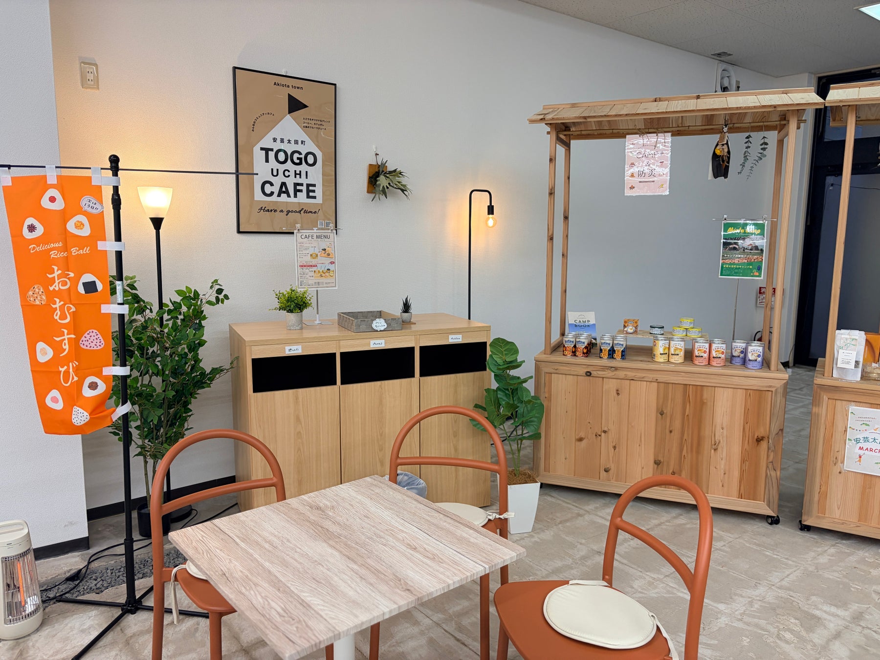 店舗のカフェスペースが令和7年12月から本格オープン。とごうちストアオリジナルブレンドコーヒーや、和紅茶、庄原のクラフトジンジャエールなどが楽しめる。