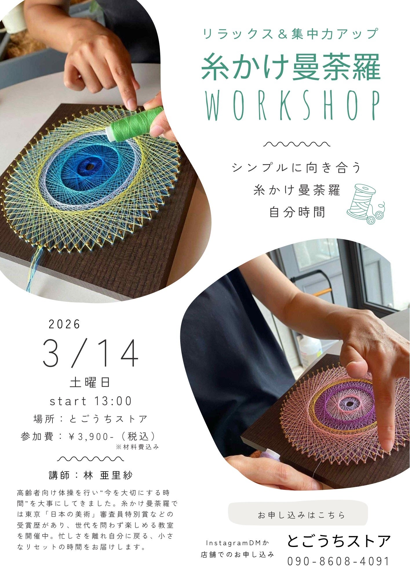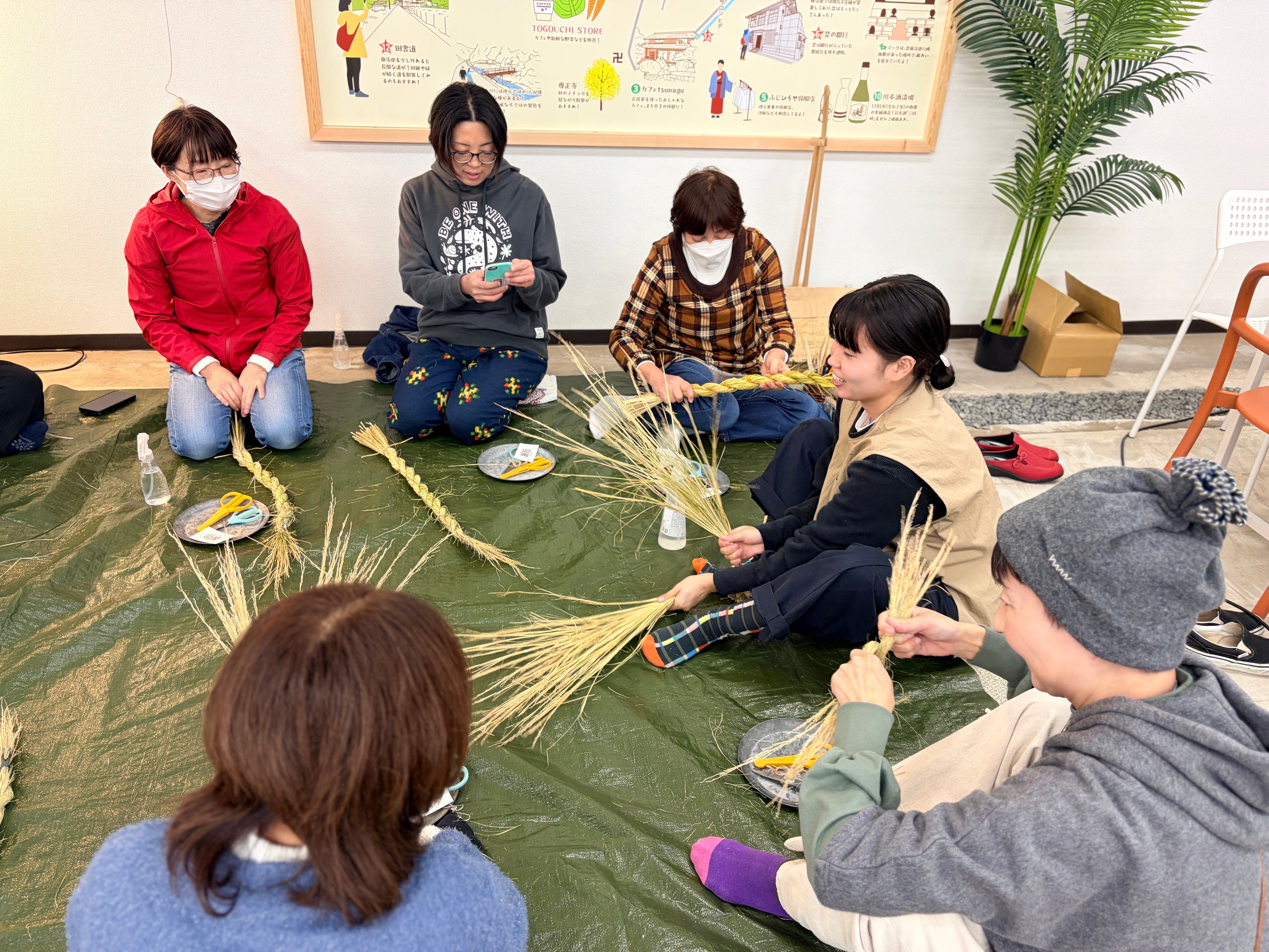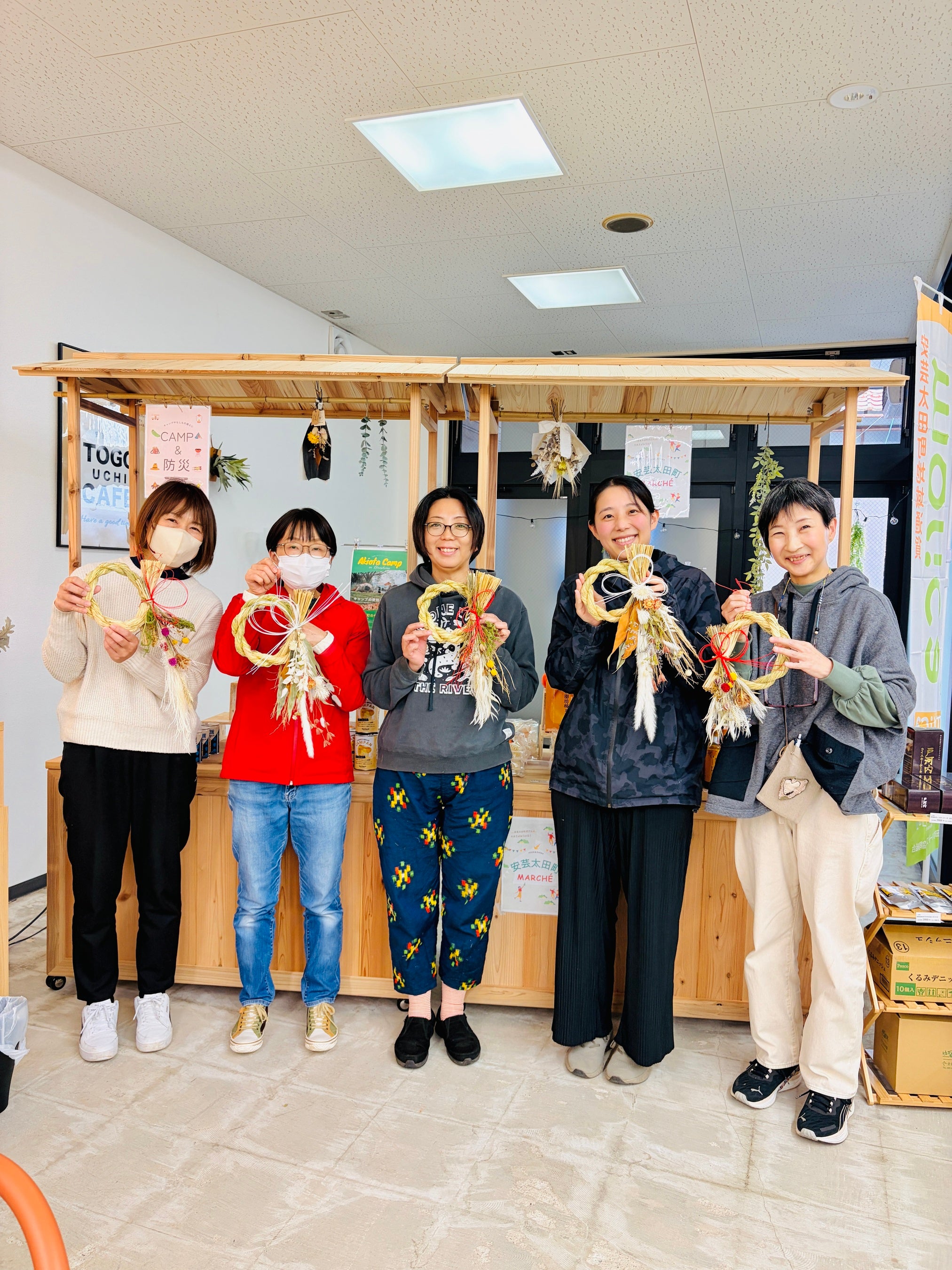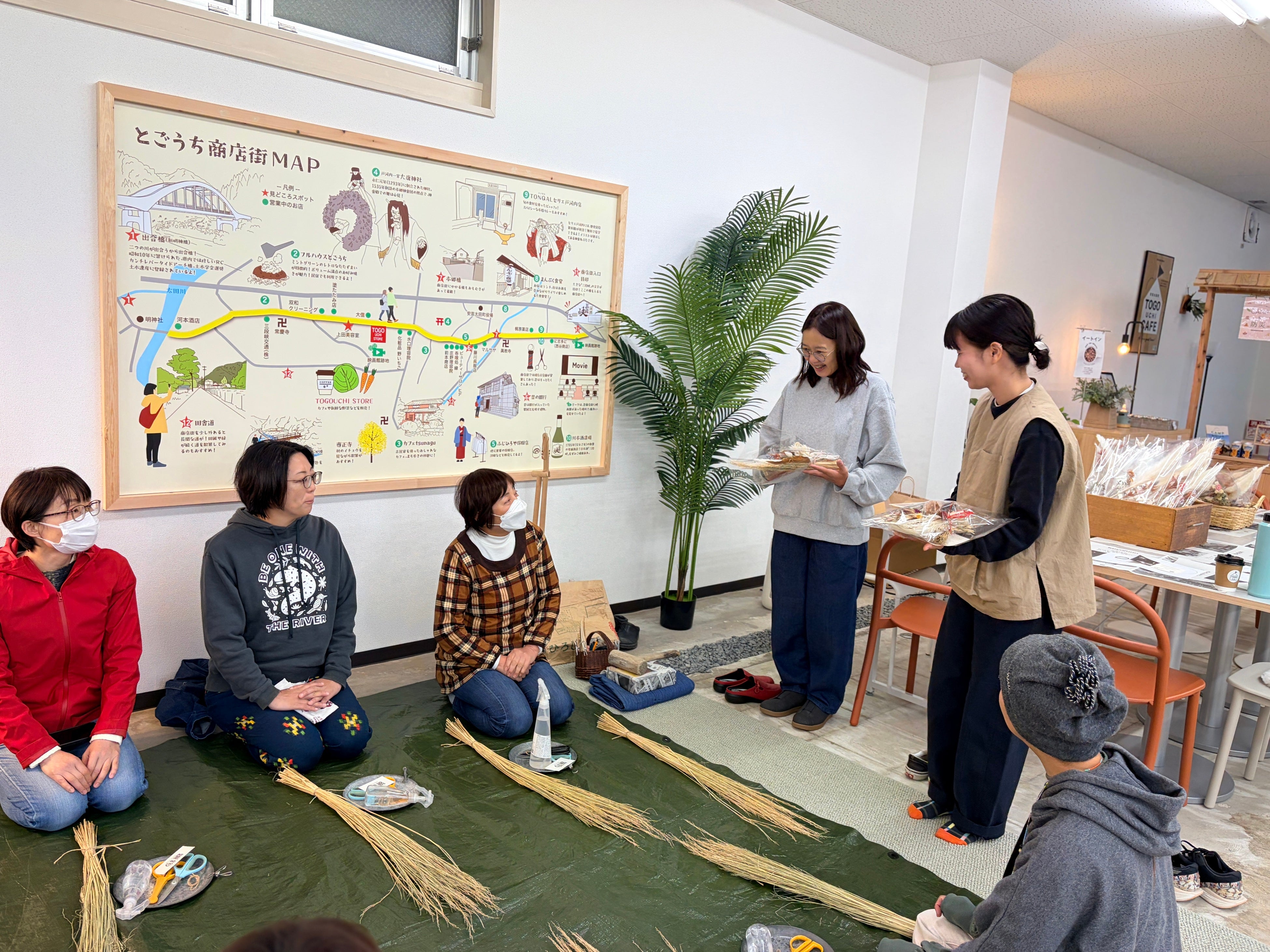 コミュニティショップとして、地域の人や地域外の人が交流することができるイベントなどを企画開催。これまでに縄から綯う、お花のしめ縄づくりやフラワーアレンジメントを体験いただいた。今後も糸かけ曼荼羅などの企画を予定している(3月14日開催予定)