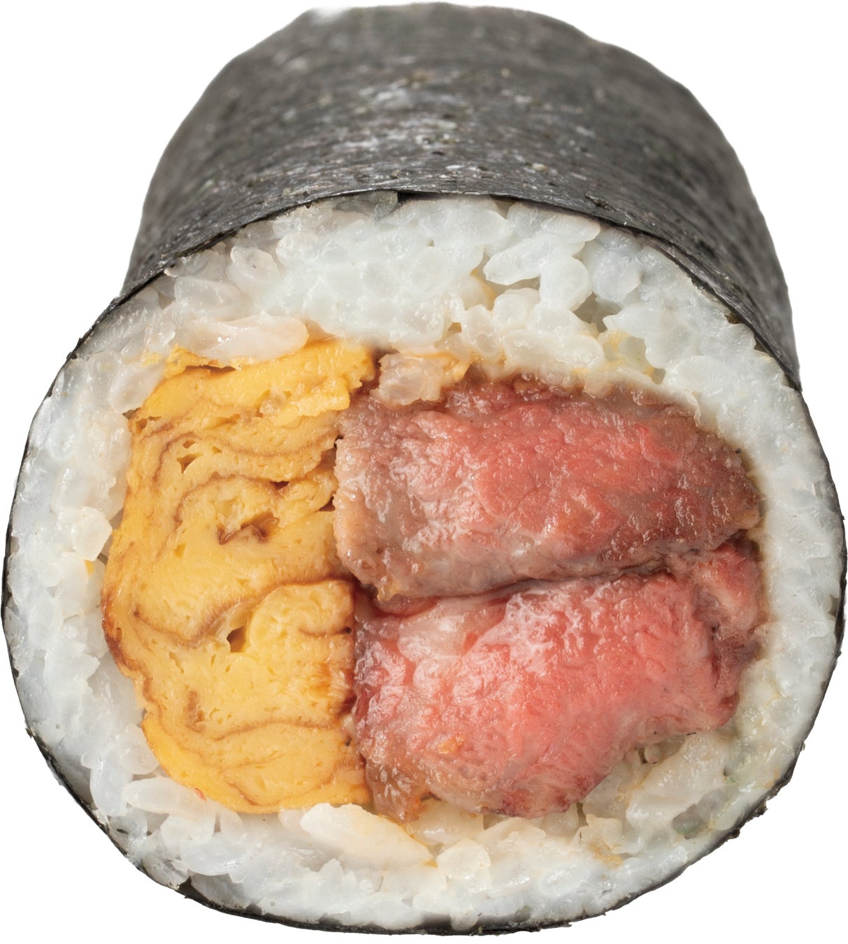 <粋巻とは>甘辛く味付けした牛バラ肉とたまごのみの「粋」なすき焼き巻。お子さまにもおすすめ!シンプルイズザベスト