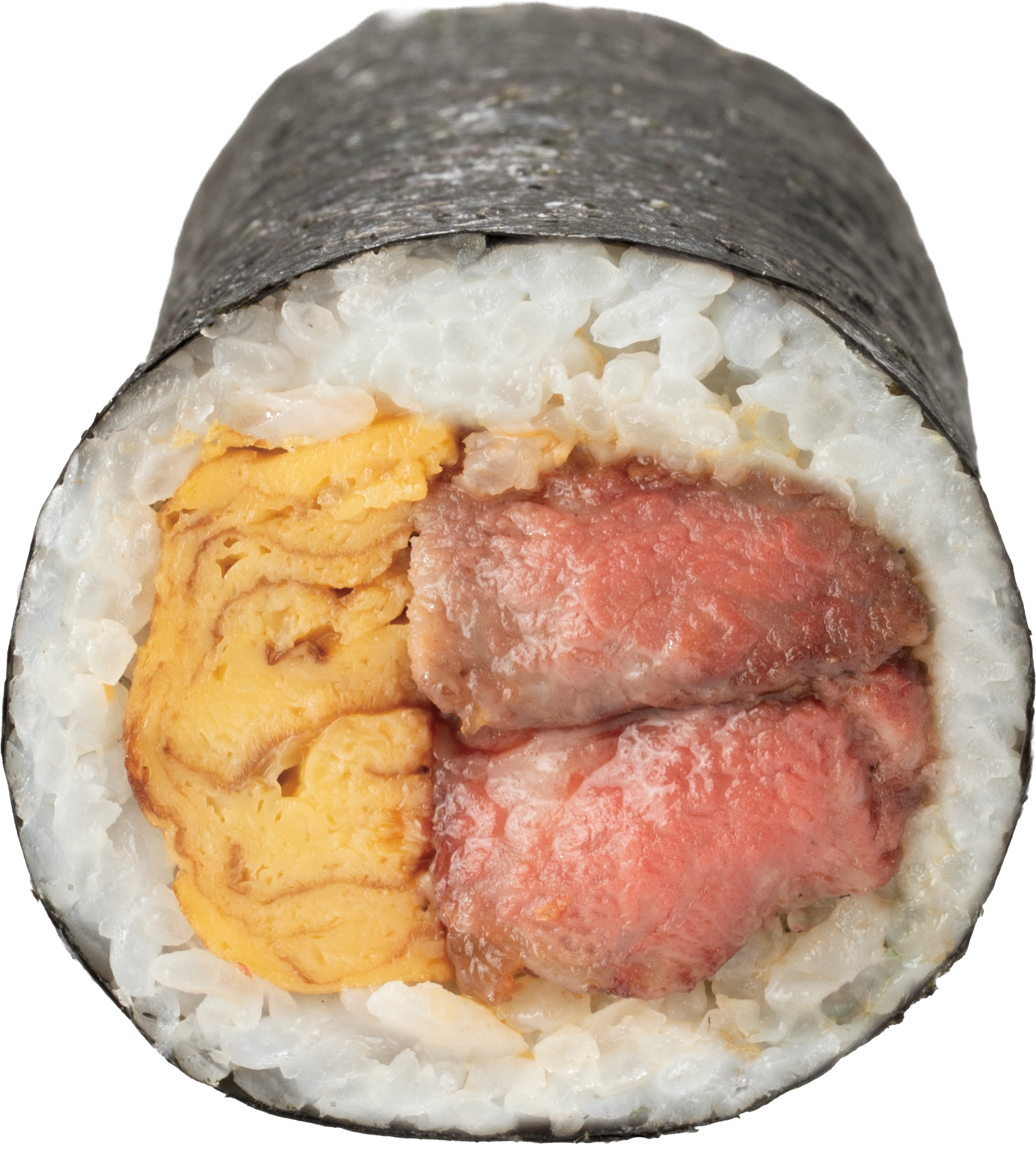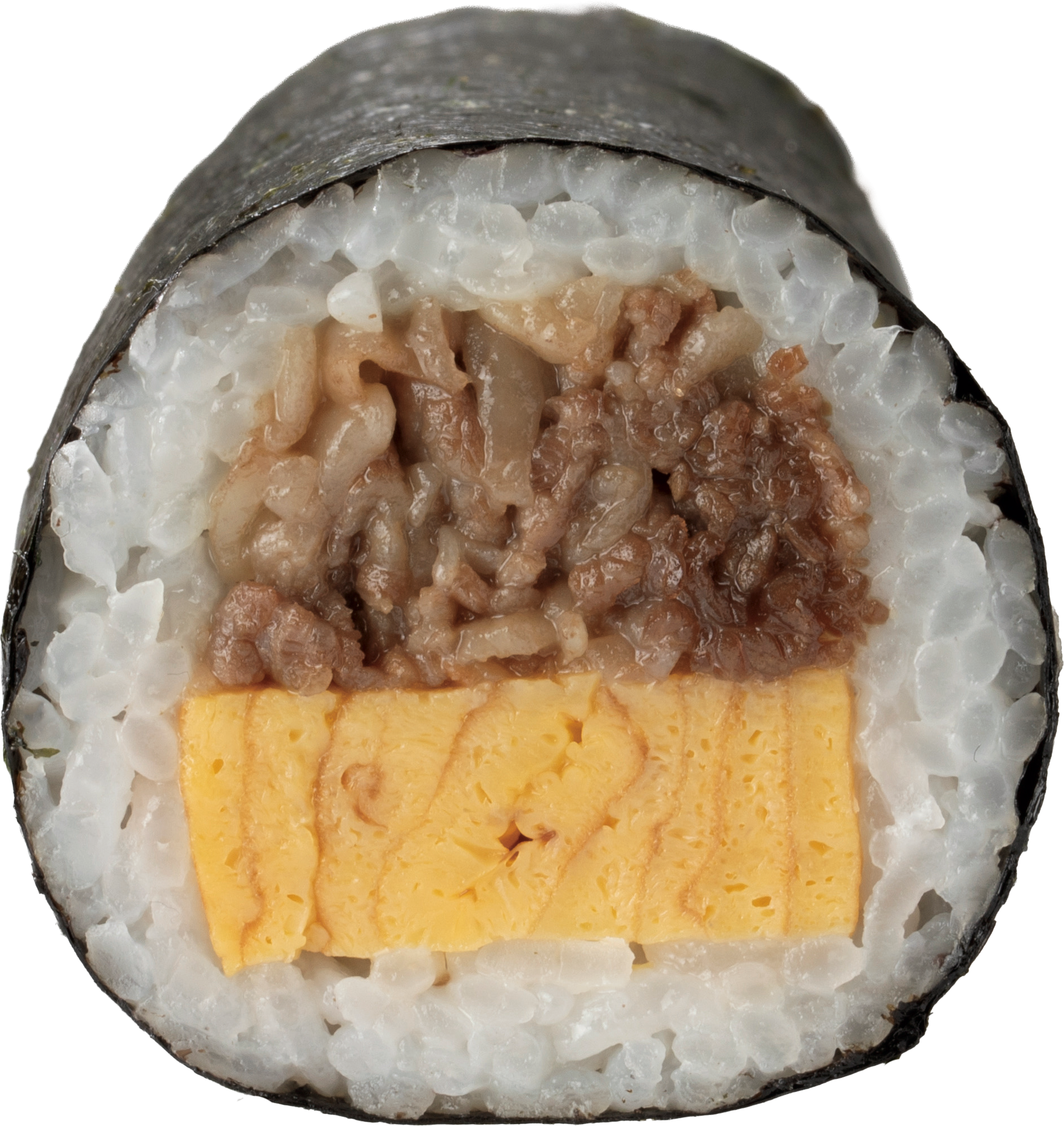 <粋巻とは>甘辛く味付けした牛バラ肉とたまごのみの「粋」なすき焼き巻。お子さまにもおすすめ!シンプルイズザベスト