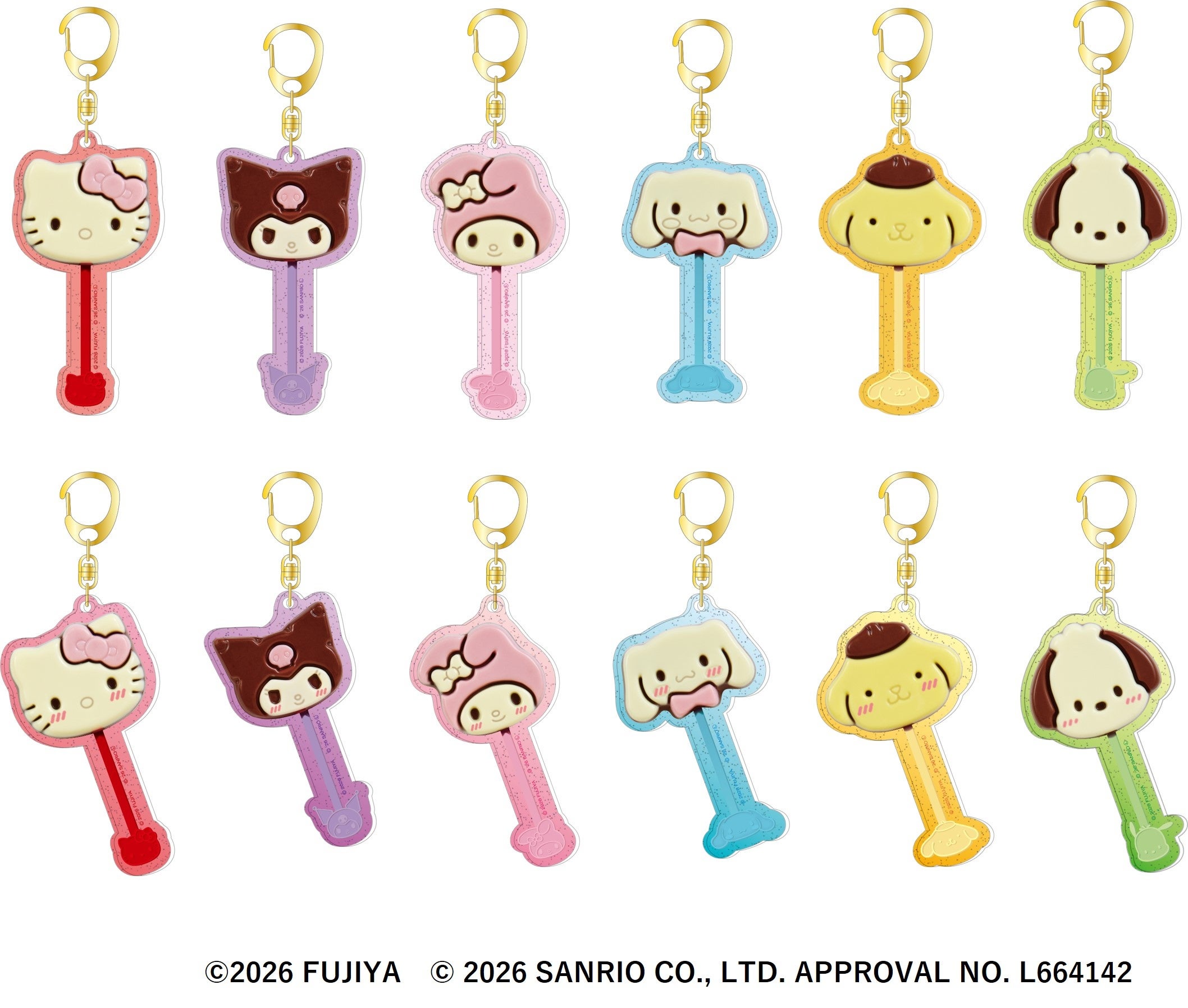 不二家の人気商品「サンリオキャラクターズチョコレート」がアクリルチャームになって登場! 全12種ランダムです。