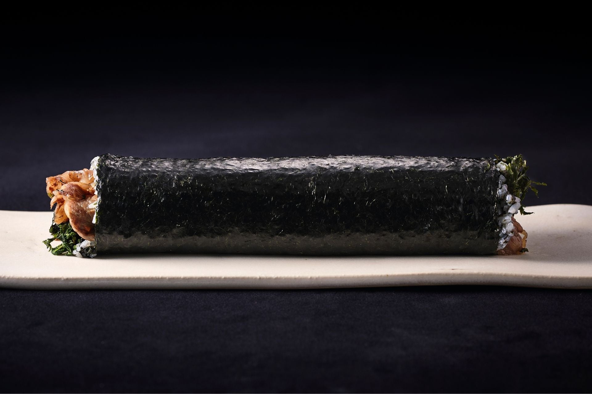 本商品は、有明海産の希少な新海苔「あさくさ」を使用し、 シャリまで海苔を混ぜ込んだ海苔を味わう恵方巻。具材には、すき焼き風に仕上げた黒毛和牛と玉露茶葉を合わせた、贅沢な一品に仕上げました。