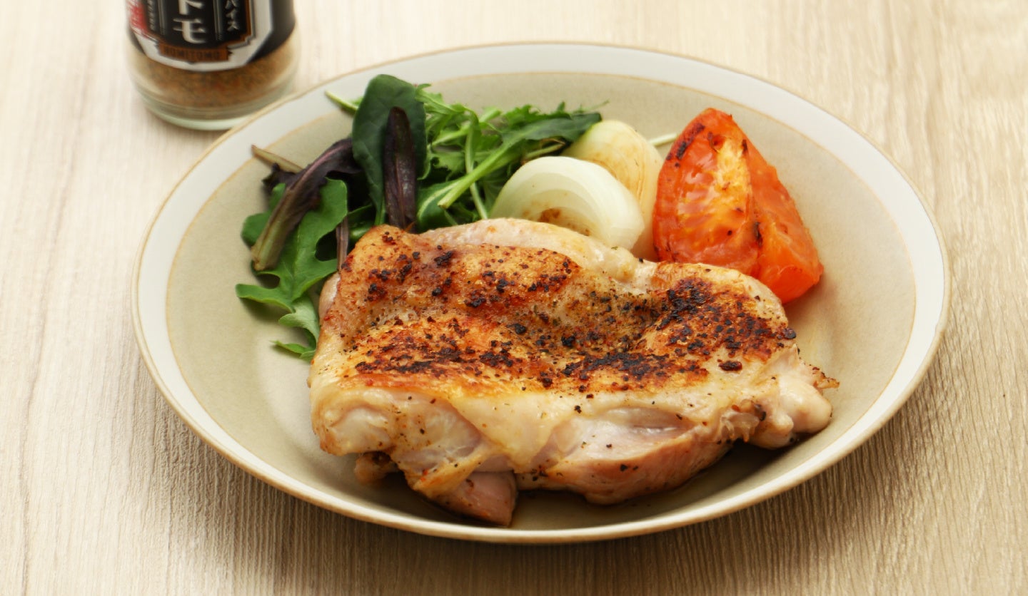バターでこんがり焼いた鶏もも肉に、「ノミトモ」をひと振り。鶏皮の香ばしさにマーガオの爽やかな香りが重なり、旨みが広がります。どんなお酒も思わず進む、定番おつまみです。