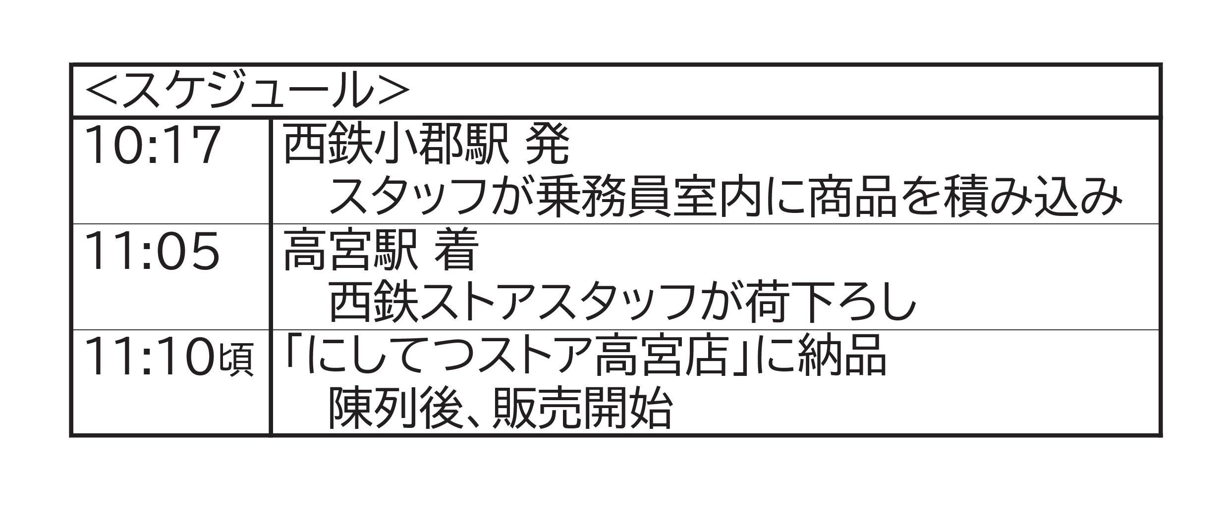 沿線近郊の生産者が大切に育てた食材を、環境にやさしい西鉄電車でスピーディーに輸送し、新鮮なうちに消費者の皆さまにお届けする「にしてつベジフルTRAIN」。今後も沿線で収穫される旬の野菜や果物の輸送・販売を行っていく予定ですので、ぜひご期待ください。