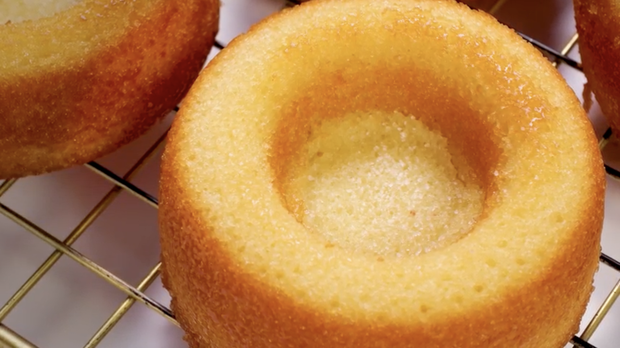 横浜バニラのフラッグシップ「塩バニラフィナンシェ」を、中央のくぼみが特徴のエンゼル型で、中はしっとり、外はカリッと焼き上げ。
