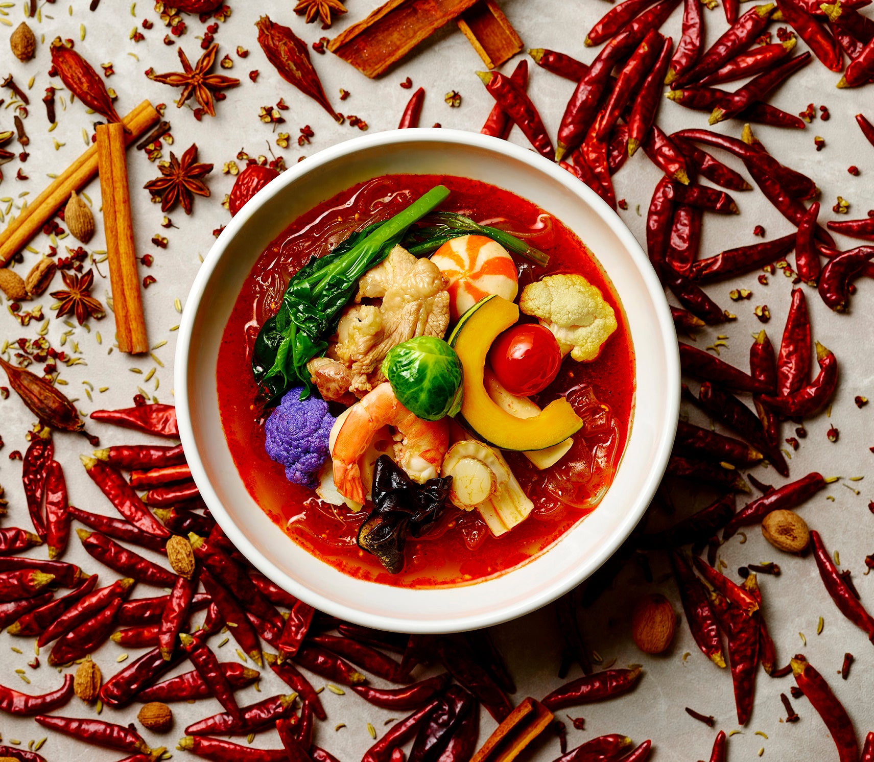 しっかりとした辛味・香り豊かなスパイスと素材の旨みを引き出した『麻辣湯スープ』胡麻の豊かな風味としびれる花椒の刺激、唐辛子の辛さが一体となった『麻辣坦々スープ』トムヤムの爽やかな酸味と香り、麻辣の辛さが融合した女性にも人気のアジアの香り『麻辣トムヤムスープ』をはじめ、女性に人気のトマトの自然な甘みと旨味をしっかり感じられる辛さや痺れが苦手な方でも楽しめる『麻辣トマトスープ』たっぷりのスパイスや痺れ、旨味を感じさせる辛口派の大人の『麻辣スパイスcurry スープ』花椒のしびれる辛さと黒酢のほどよい酸味を楽しむ、大人のための『麻辣サンラータンスープ』などなど…その日の気分や体調に合わせて選べる麻辣湯で心も体も満たされる食体験をぜひお楽しみください♪