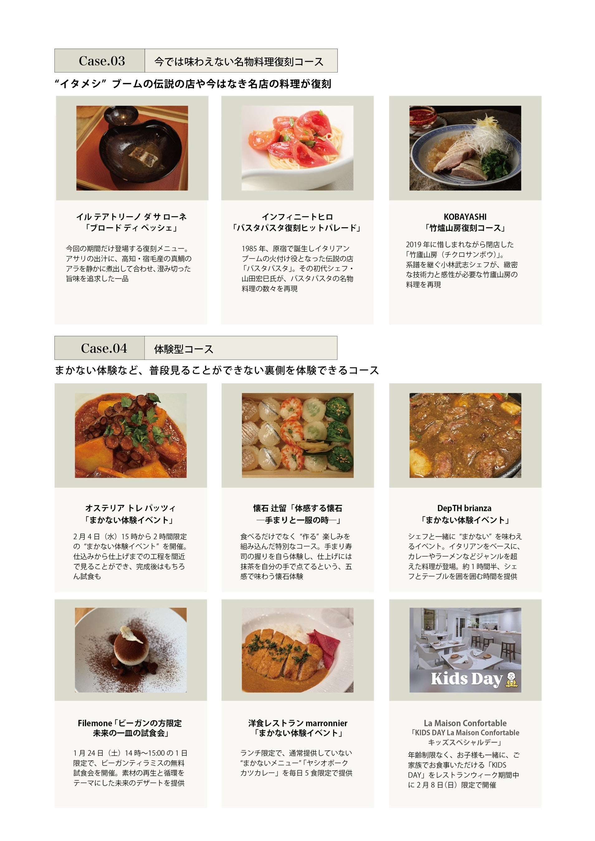 2026 年のテーマは「過去・現在・未来を紡ぐ名物料理」。 現在の東京を代表するトップレストランが「世界に誇る名物料理」を提供いたします。さらに「江戸・明治の味 が楽しめるコース」「今では味わえない名物料理復刻コース」「未来の名物料理体験コ ース」など、江戸時代から 現在、未来の東京を担う料理を体験いただける特別企画を複数ご用意。 江戸時代から 400 年以上続く食文化を、“体験” として再編集し、未来へつなぎます
