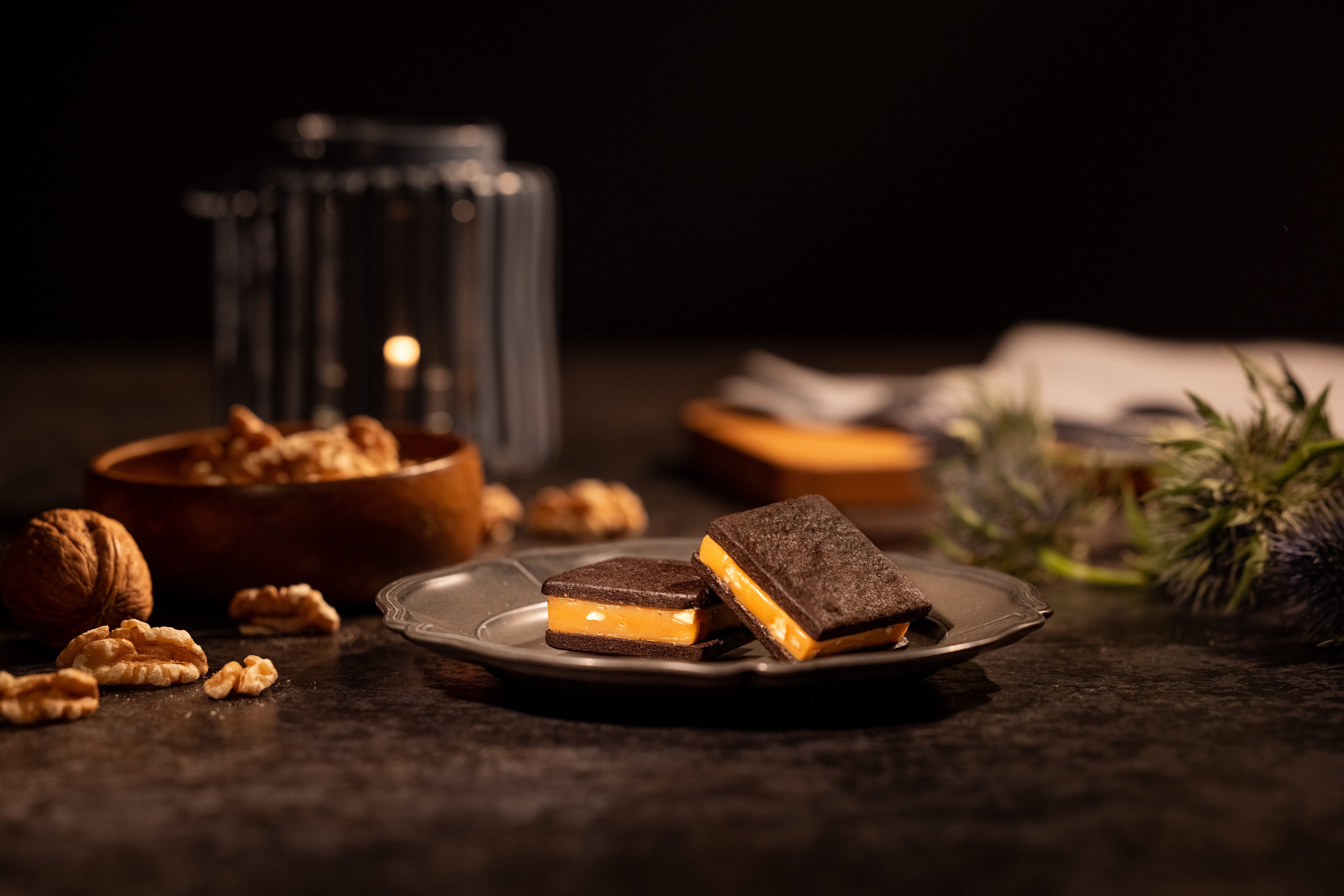くちどけなめらかなキャラメルを香ばしいカカオクッキーでサンドしました。