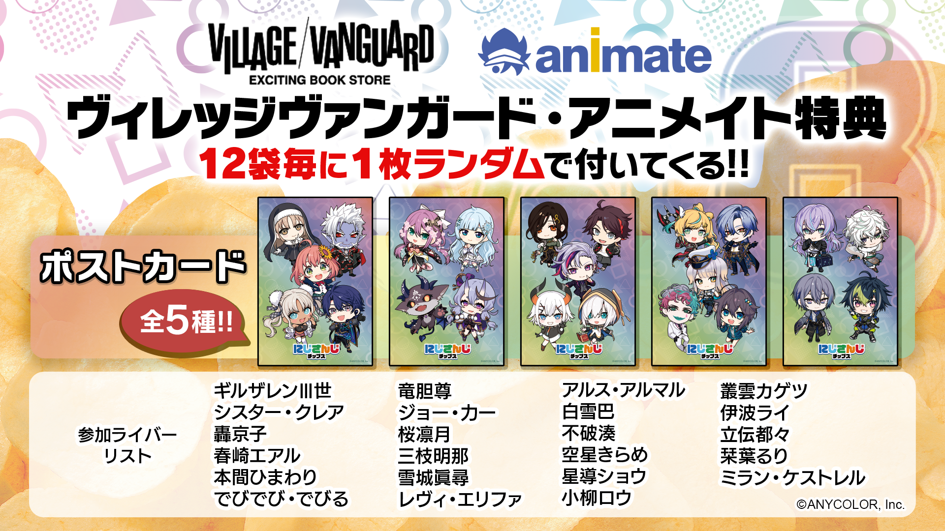 ・全国のアニメイト(12袋購入毎に限定特典のポストカードをランダムで1種プレゼントいたします。)